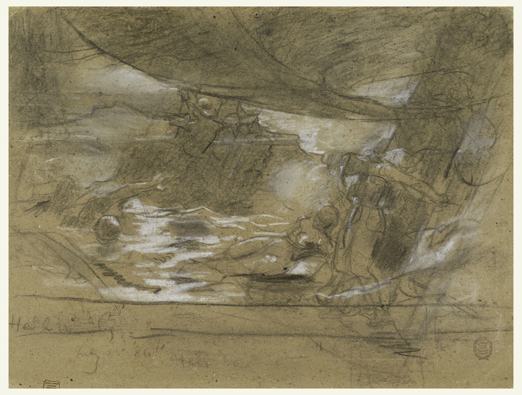 Drawing, Ship Deck with Two Women Lashed to the Mast; Winslow Homer (American, 1836–1910); USA; charcoal, white chalk on brown cardboard; 30.9 x 41 cm (12 3/16 x 16 1/8 in.); Gift of Charles Savage Homer, Jr.; 1912-12-35