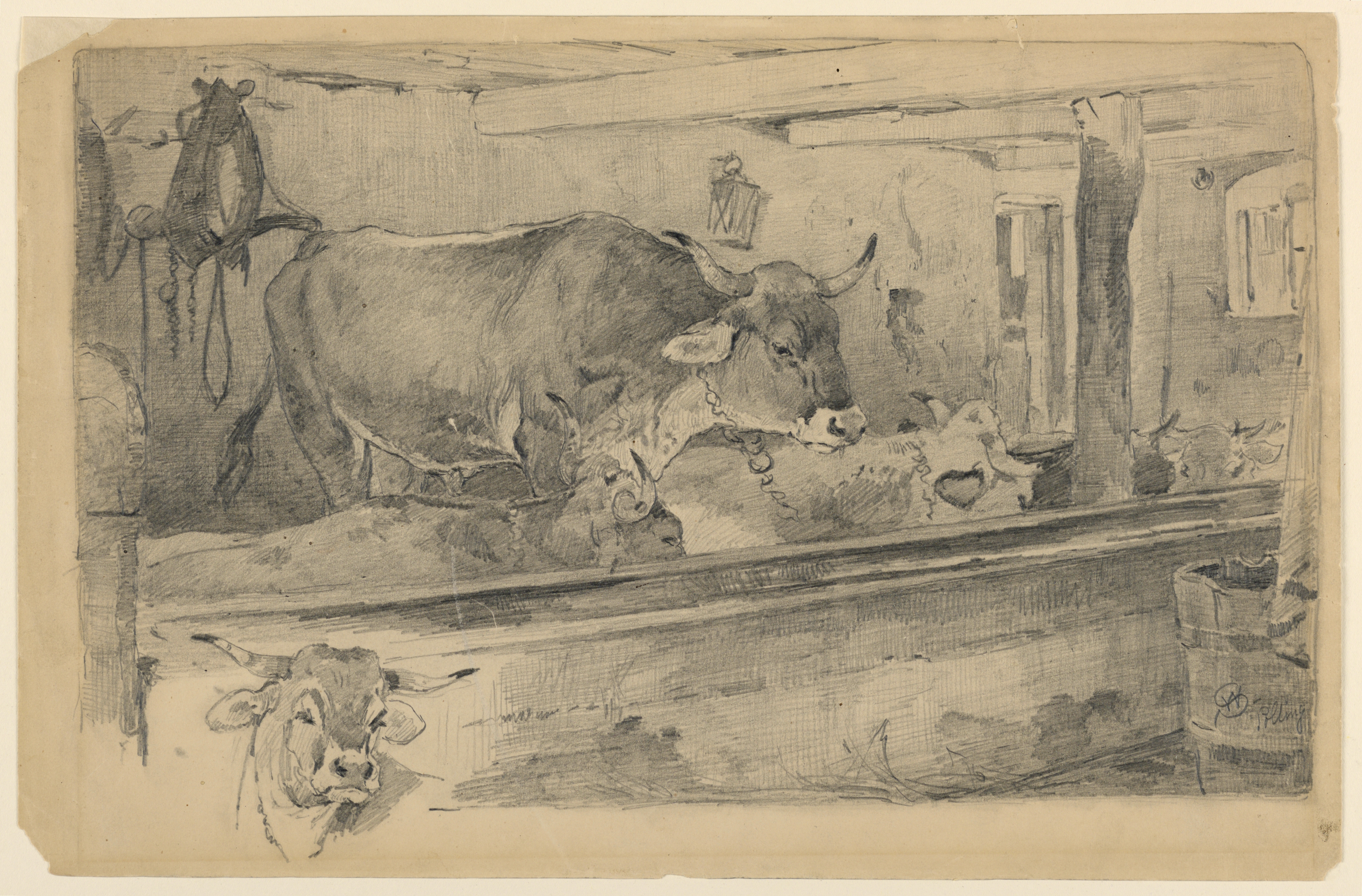 Drawing, Cattle Study for Sheep-Shearing; Walter Shirlaw (American, b. Scotland, 1838–1909); USA; graphite on heavy cream wove paper; 29.1 x 44.4 cm (11 7/16 x 17 1/2 in. ); Gift of Mrs. Walter Shirlaw; 1912-16-109