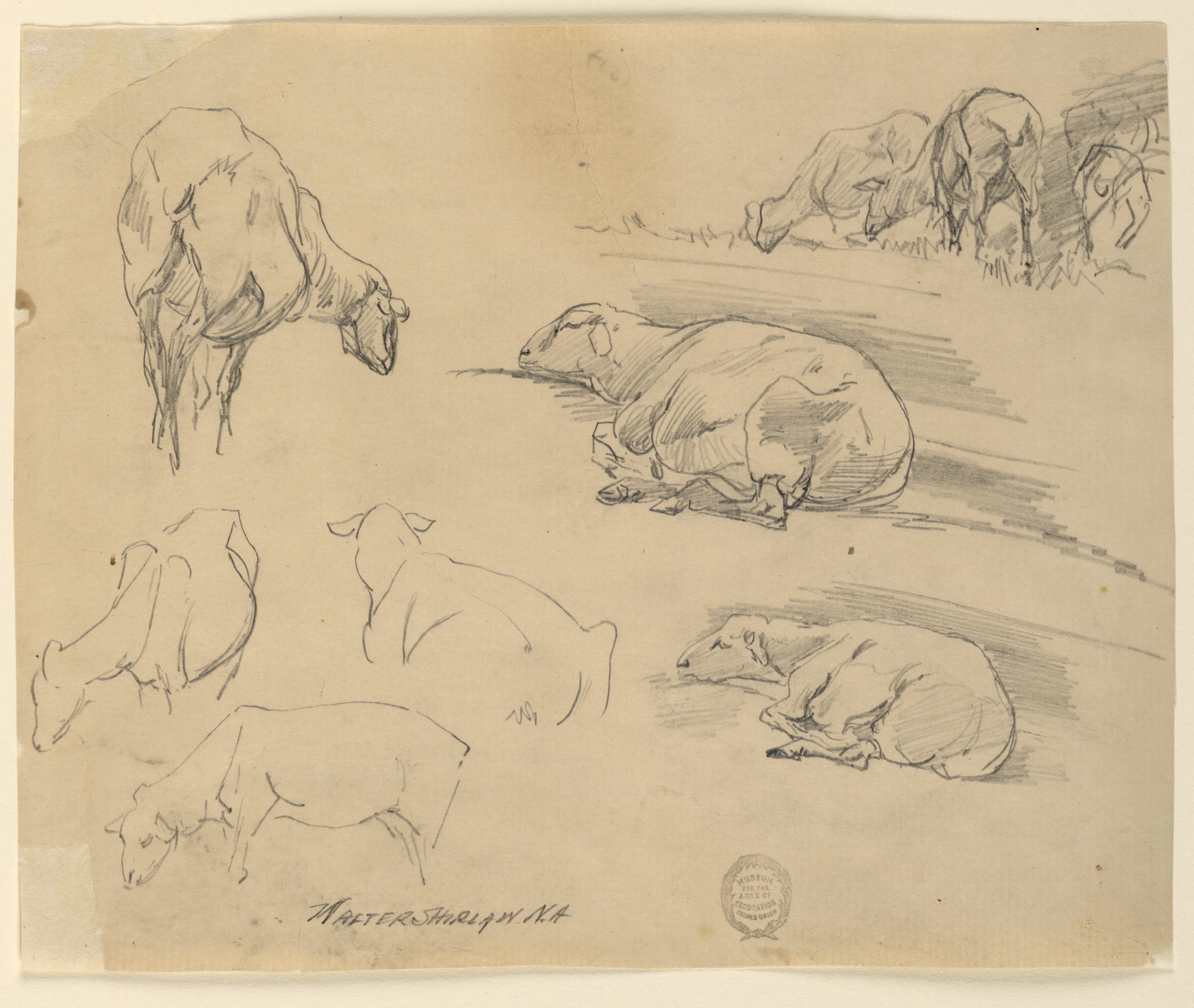 Drawing, Sketches of Sheep; Walter Shirlaw (American, b. Scotland, 1838–1909); USA; graphite on paper; 20 × 25 cm (7 7/8 × 9 13/16 in.); Gift of Mrs. Walter Shirlaw; 1912-16-116