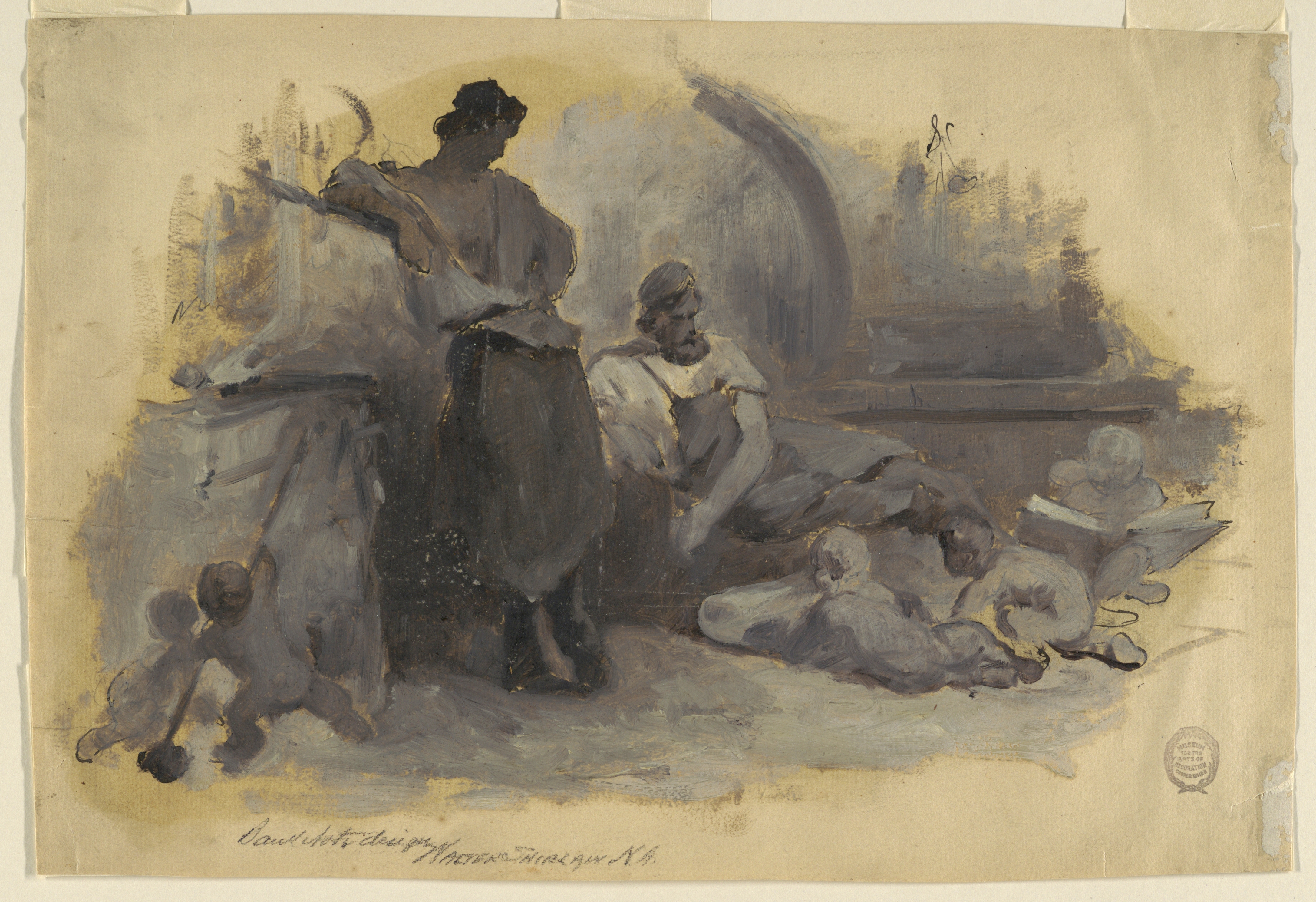 This is a Drawing. It was created by Walter Shirlaw. It is dated ca. 1895 and we acquired it in 1912. Its medium is brush and oil, black crayon, pen and ink on rough paper. It is a part of the Drawings, Prints, and Graphic Design department.