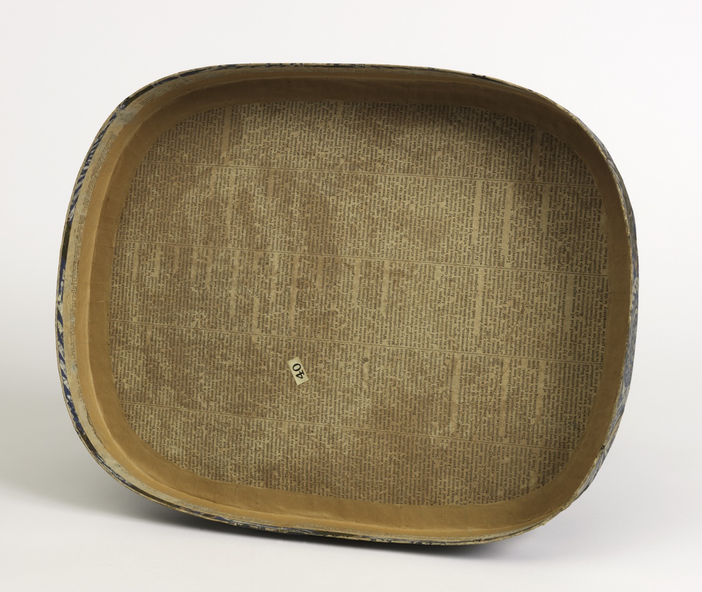 Bandbox (USA); block-printed on handmade paper, pasteboard support; 44 x 34 x 32.5 cm (17 5/16 x 13 3/8 x 12 13/16 in.); Gift of Eleanor and Sarah Hewitt; 1913-17-9-a,b