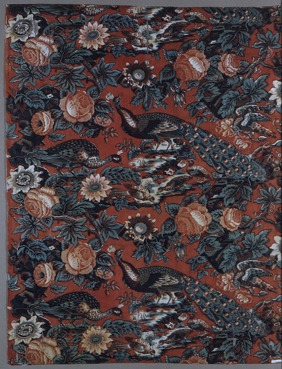 This is a Textile. It is dated early 19th century and we acquired it in 1913. Its medium is cotton and its technique is roller and block printed on plain weave. It is a part of the Textiles department.