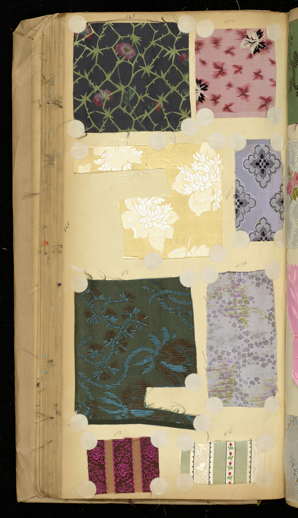 This is a Sample book. It is dated 1890–1910 and we acquired it in 1914. Its medium is silk, paper, cardboard. It is a part of the Textiles department.