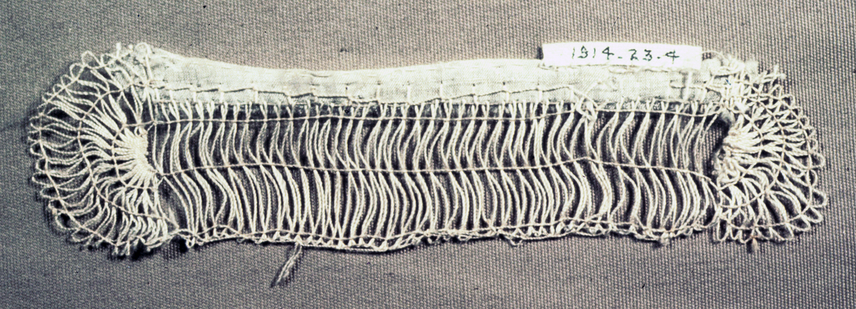 This is a Sample. It is dated early 20th century and we acquired it in 1914. Its medium is silk and its technique is knotted hairpin lace. It is a part of the Textiles department.