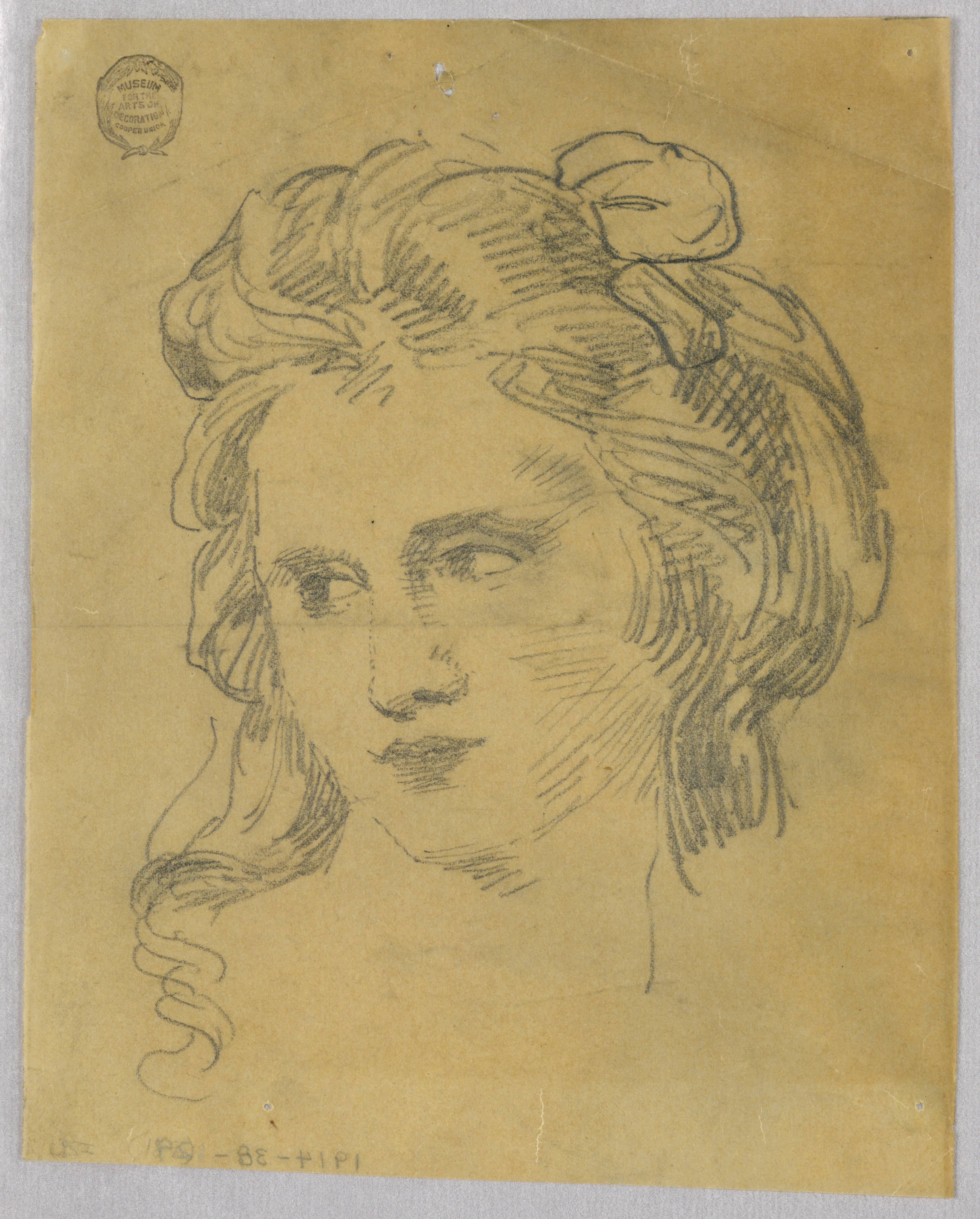 Drawing, Sketch of Woman's Head; Francis Augustus Lathrop (American, 1849 - 1909); USA; graphite on tracing paper; 21.3 × 16.8 cm (8 3/8 × 6 5/8 in.); 1914-38-129