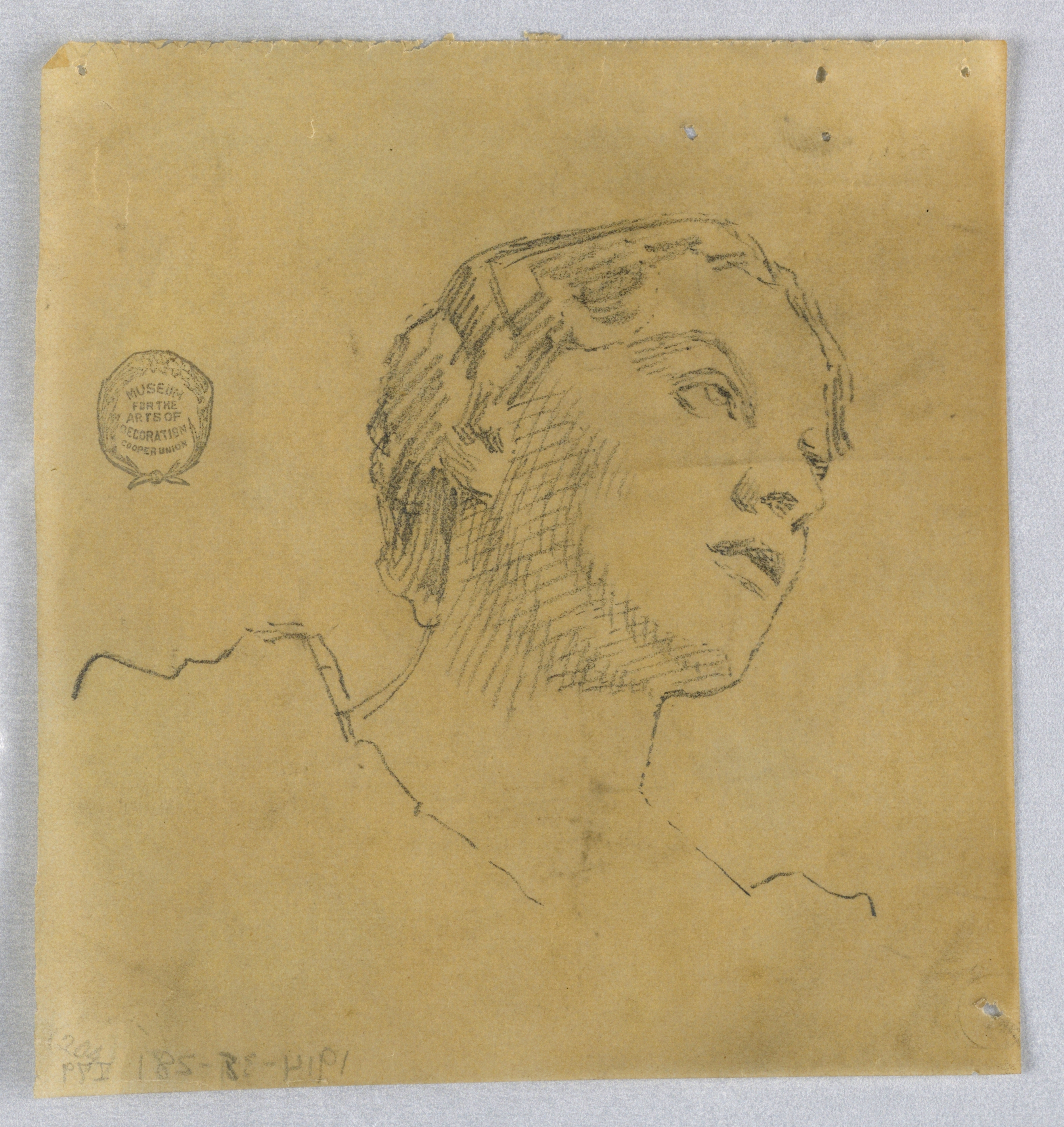 Drawing, Sketch of a Woman's Head; Francis Augustus Lathrop (American, 1849 - 1909); USA; graphite on tracing paper; 14 × 13.1 cm (5 1/2 × 5 3/16 in.); 1914-38-281