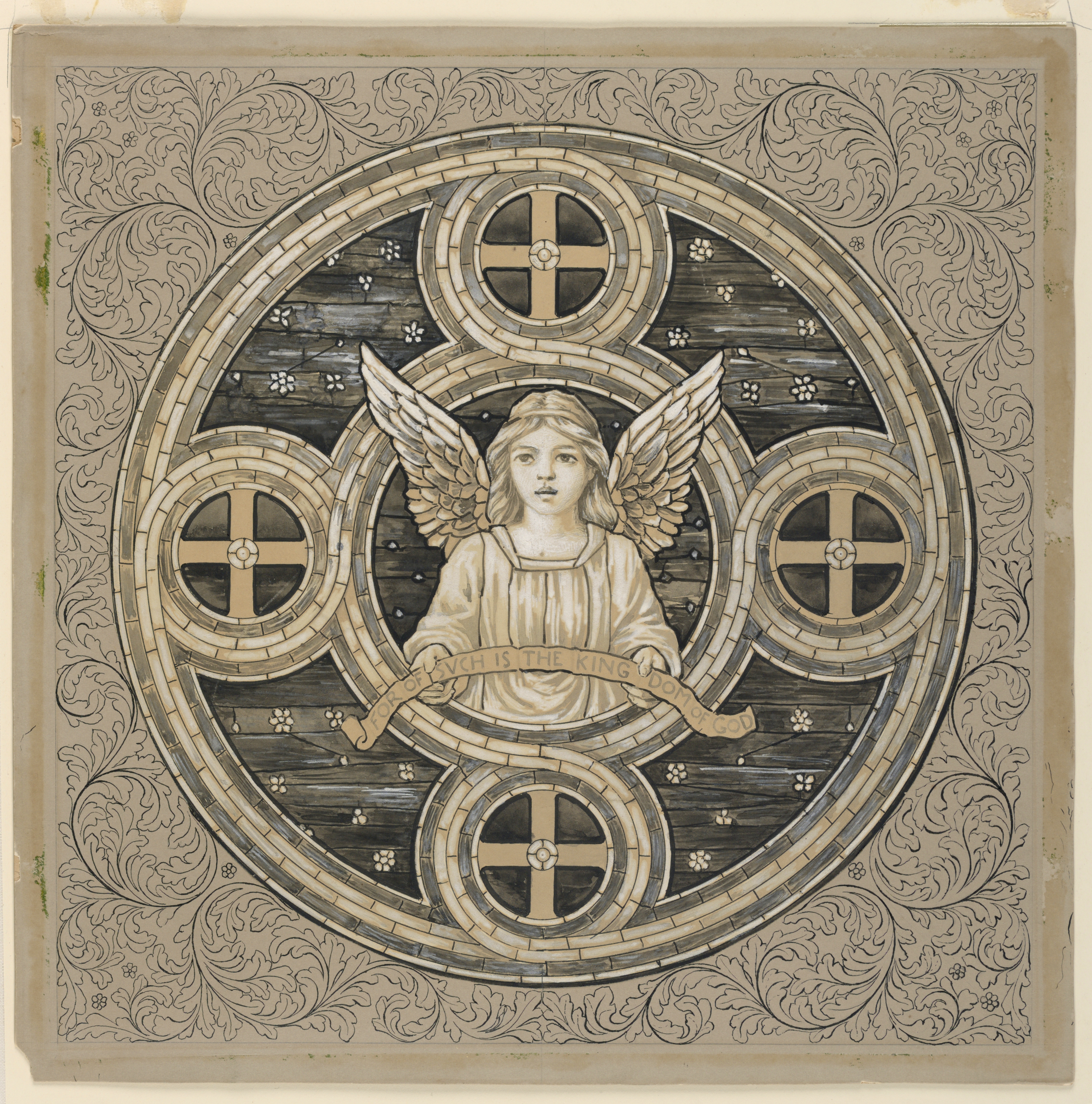 Drawing, Study for Memorial Window in Church at Oceanic, New Jersey; Francis Augustus Lathrop (American, 1849 - 1909); USA; pen and black ink, brown and black wash, and white gouache on paper mounted to board; 37.4 × 37.4 cm (14 3/4 × 14 3/4 in.); 1914-38-31