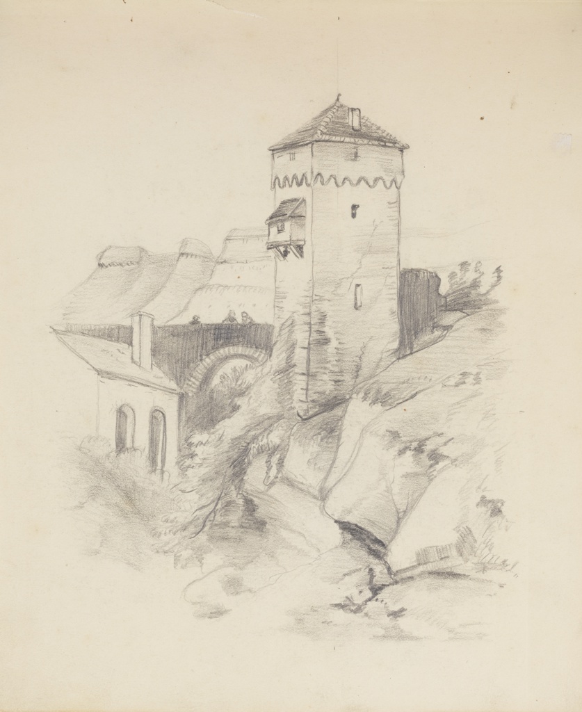 Drawing, Tower in a Village