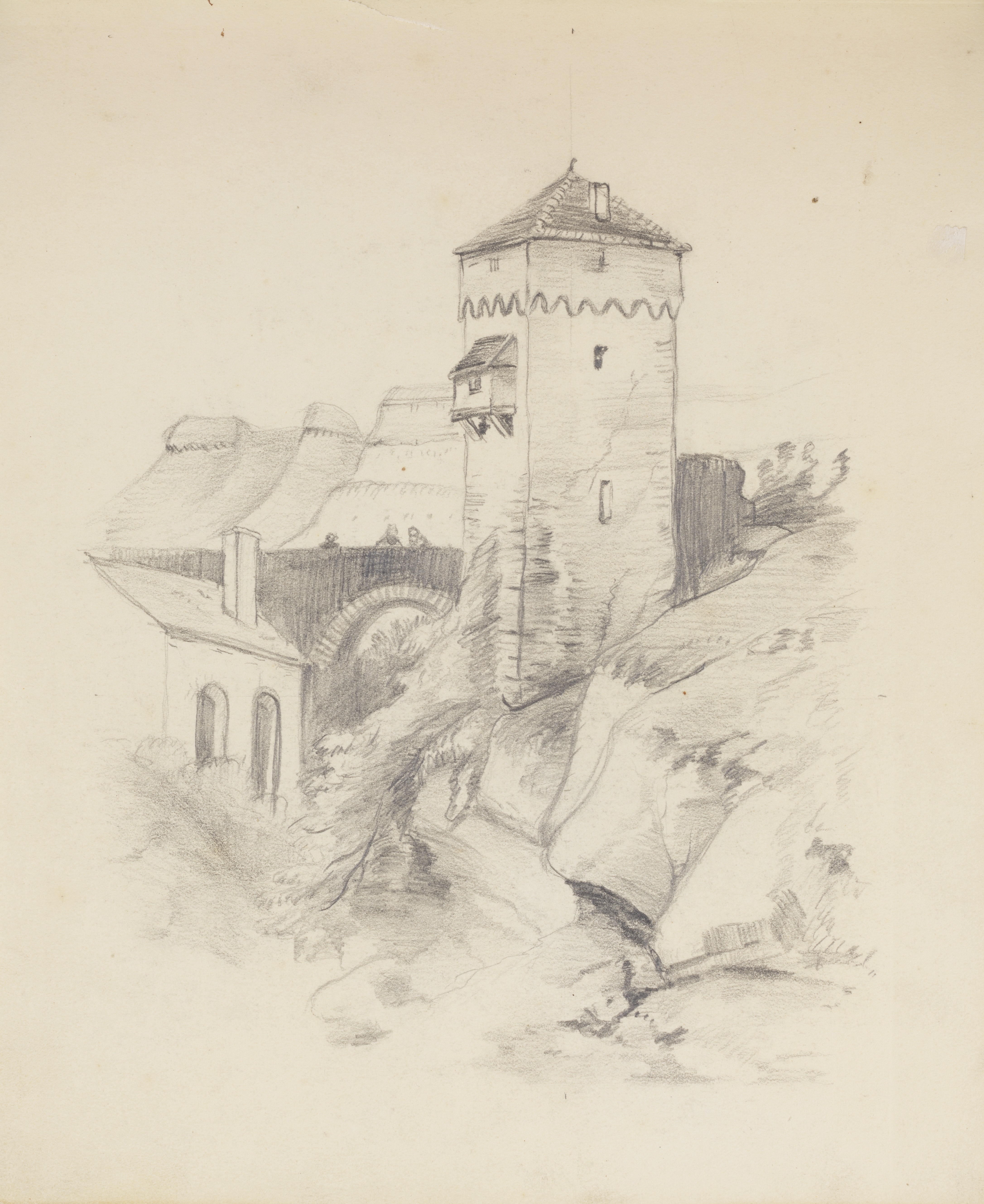 Drawing, Tower in a Village; Francis Augustus Lathrop (American, 1849 - 1909); USA; graphite on white paper; 26.1 × 20.7 cm (10 1/4 × 8 1/8 in.); 1914-38-330
