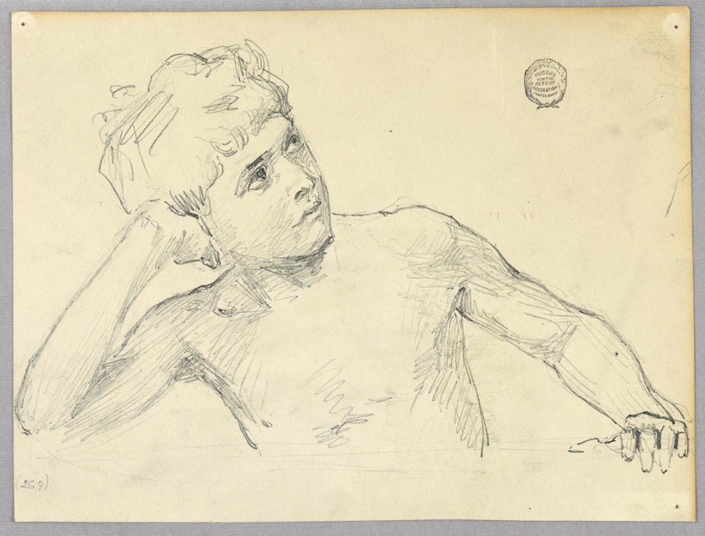 Drawing, Figure Study; Francis Augustus Lathrop (American, 1849 - 1909); USA; graphite on paper; 19 × 25.3 cm (7 1/2 × 9 15/16 in.); 1914-38-90