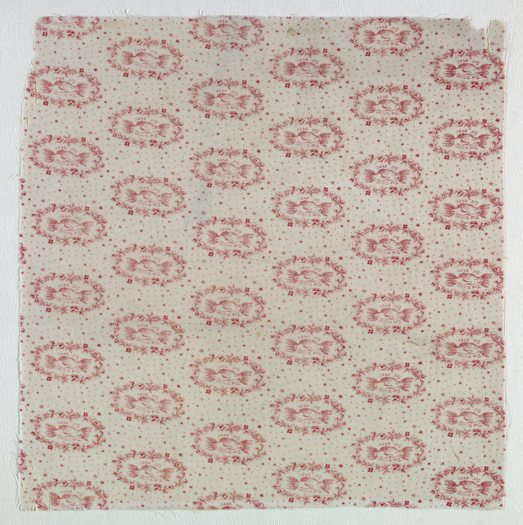 This is a Textile. It is dated 1864 and we acquired it in 1915. Its medium is cotton and its technique is printed by engraved roller on plain weave. It is a part of the Textiles department.