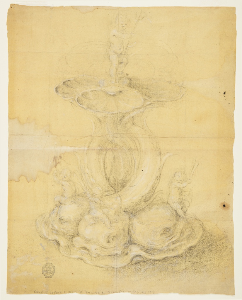 Drawing, Design for a Centerpiece; Circle of Jan Lutma (Dutch, ca. 1584 - 1669); Netherlands; chalk on tan laid paper; 35.8 x 28.5 cm (14 1/8 x 11 1/4 in.); Gift of Ogden Codman; 1916-9-9