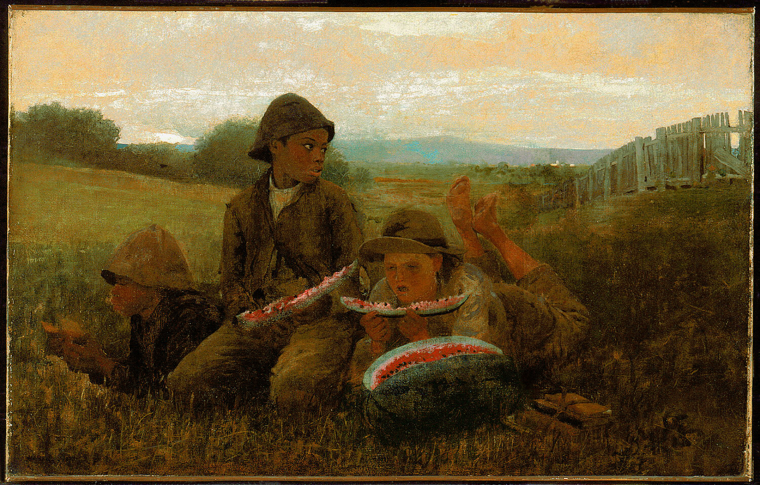 Painting, The Watermelon Boys; Winslow Homer (American, 1836–1910); USA; brush and oil paint on canvas ; 61.3 × 96.8 cm (24 1/8 × 38 1/8 in.); Gift of Charles Savage Homer, Jr.; 1917-14-6