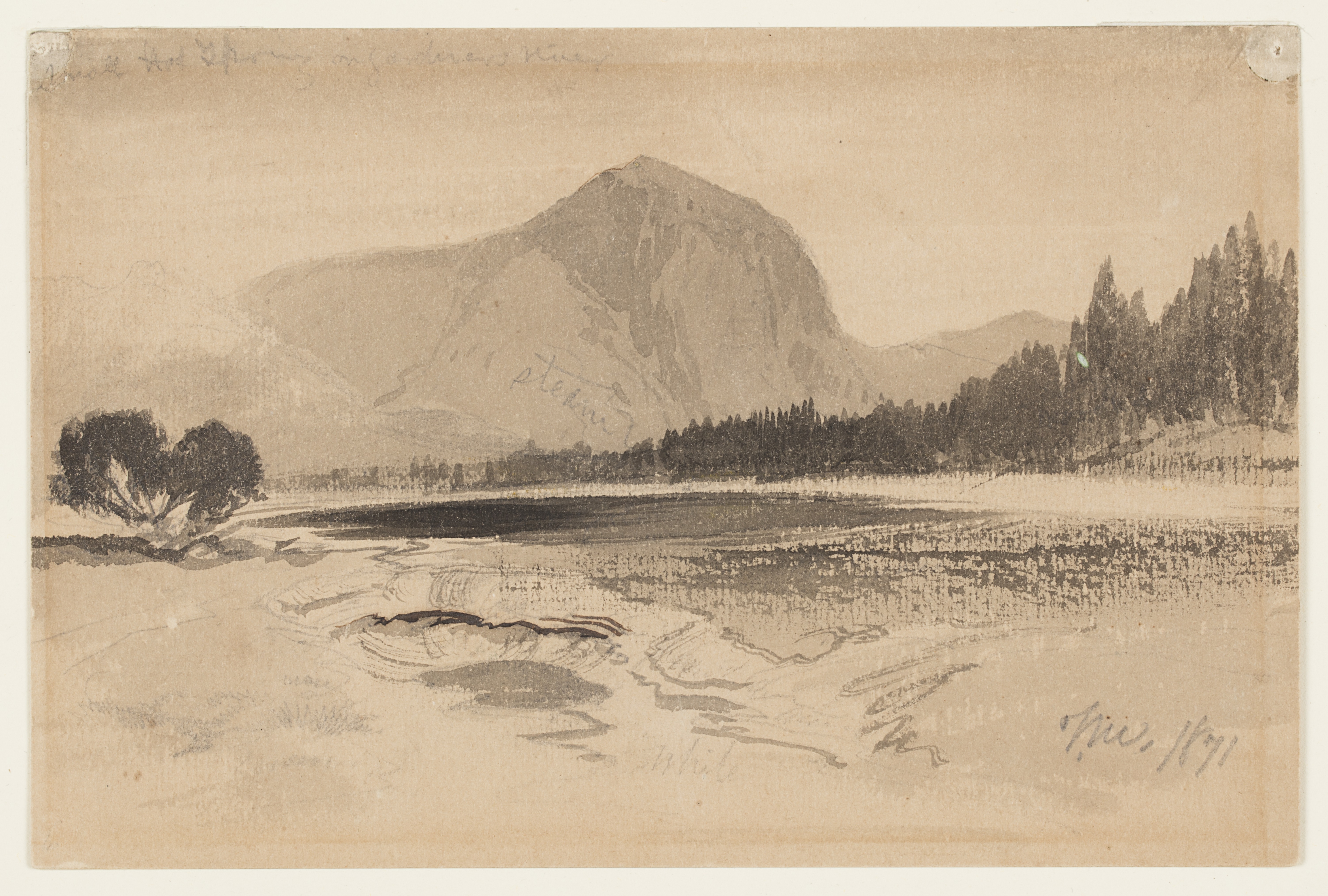 Inscribed in graphite, upper left: Small Hot Spring on Gardener's River; upper center: steam; lower center: white; lower left: (6).; verso: inscribed in graphite, upper right: Corinne, Utah. June ... 71; and repeatedly at center: snow; [according to Rudolph Berliner in 1943] and in ink: No. 276.