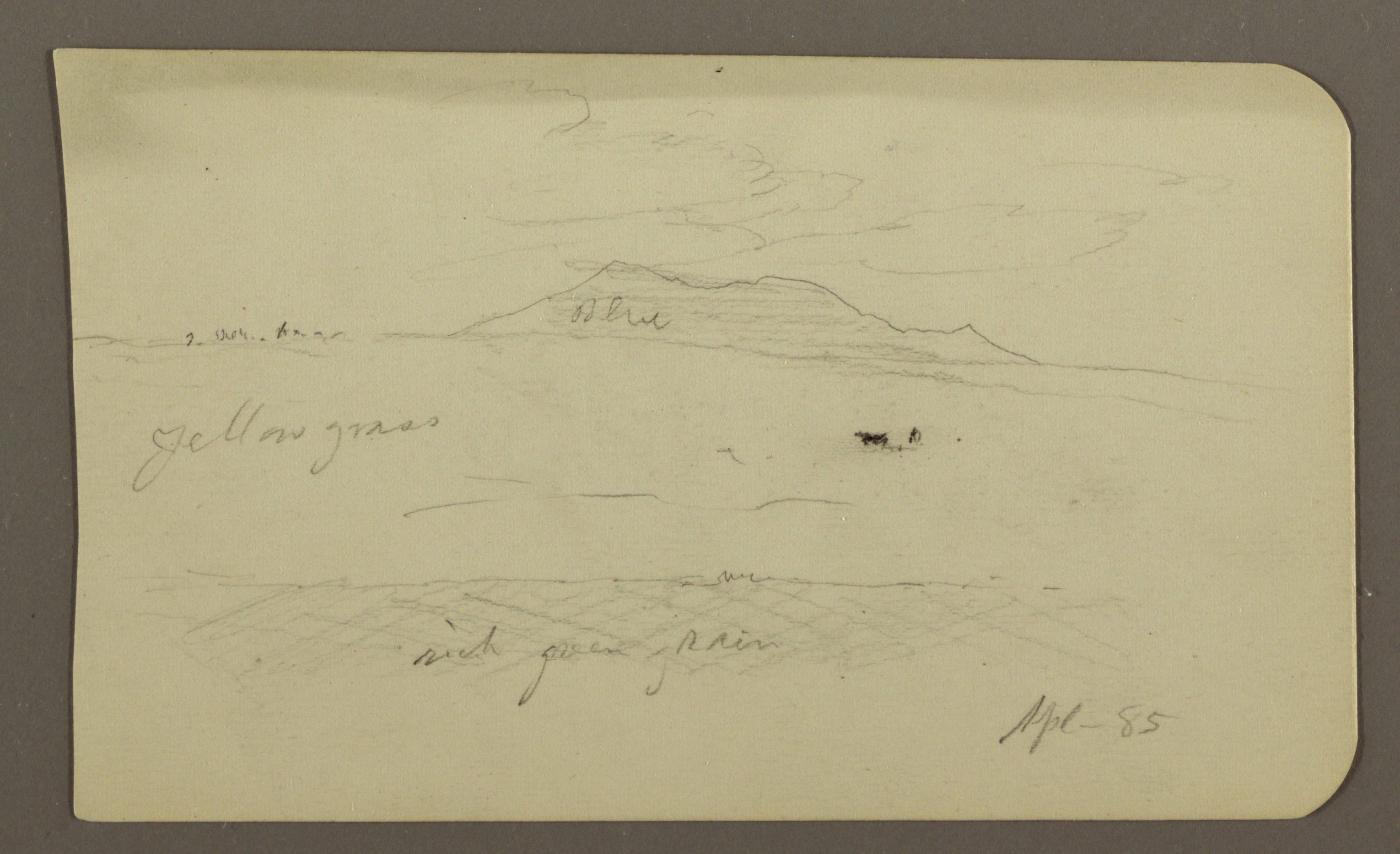 This is a Drawing. It was created by Frederic Edwin Church. It is dated April 1885 and we acquired it in 1917. Its medium is graphite on off-white wove paper; verso: graphite. It is a part of the Drawings, Prints, and Graphic Design department.