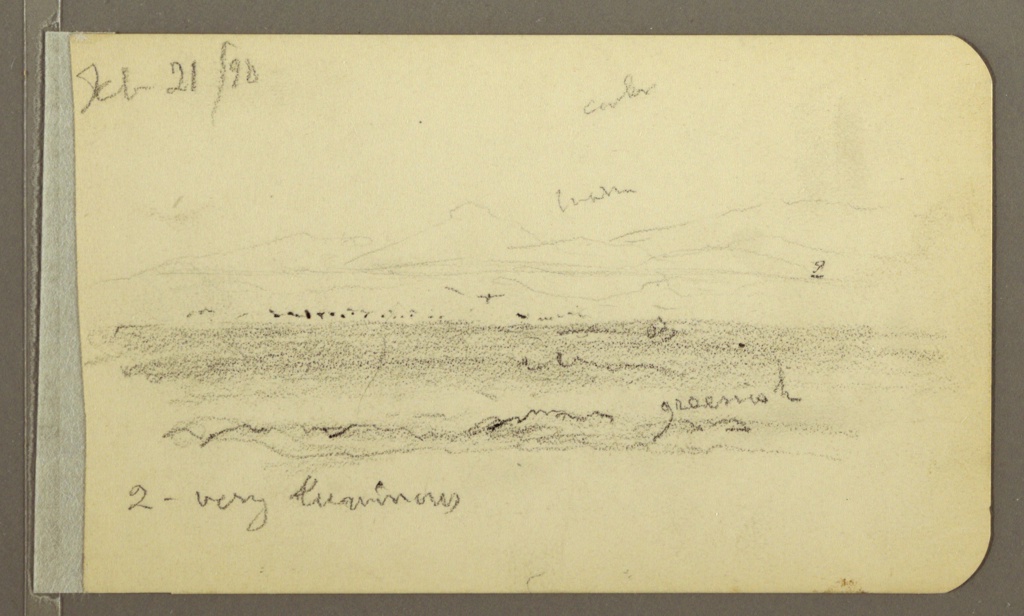 This is a Drawing. It was created by Frederic Edwin Church. It is dated February 21, 1890 and we acquired it in 1917. Its medium is graphite on off-white wove paper. It is a part of the Drawings, Prints, and Graphic Design department.