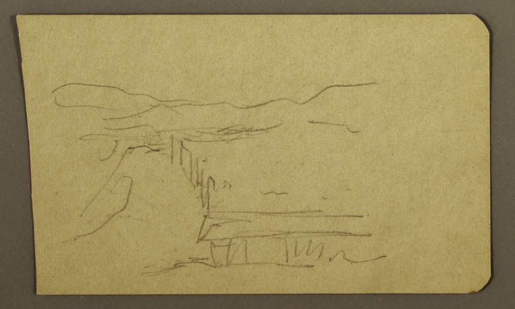 Drawing, Mountain Landscape, Mexico; Frederic Edwin Church (American, 1826–1900); USA; graphite on light brown wove paper; 10.2 × 17.1 cm (4 × 6 3/4 in.); Gift of Louis P. Church; 1917-4-1133-a