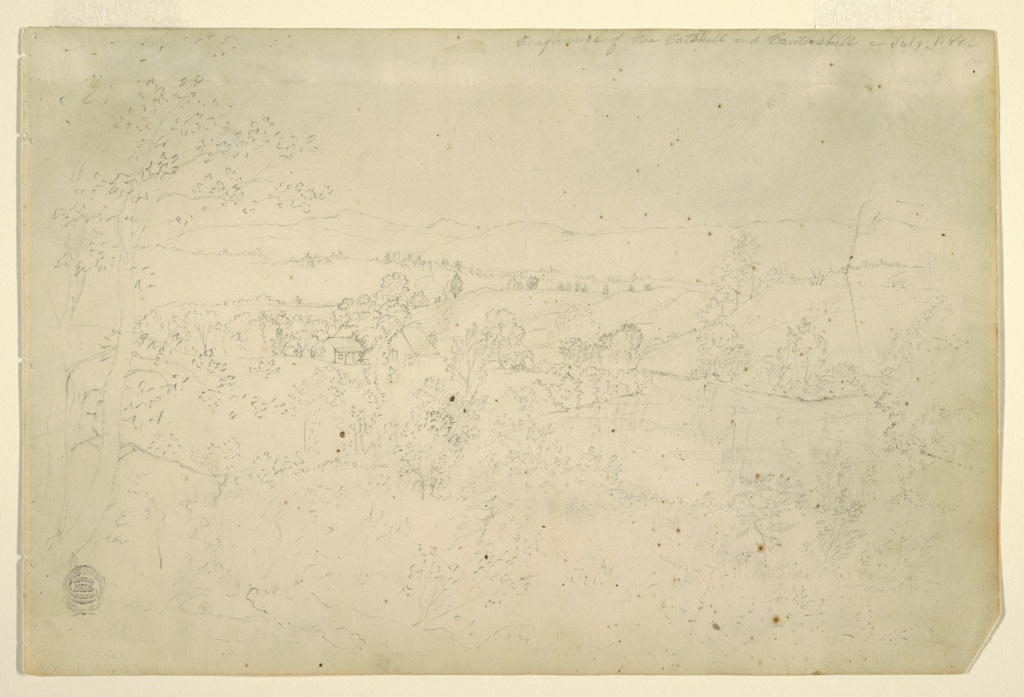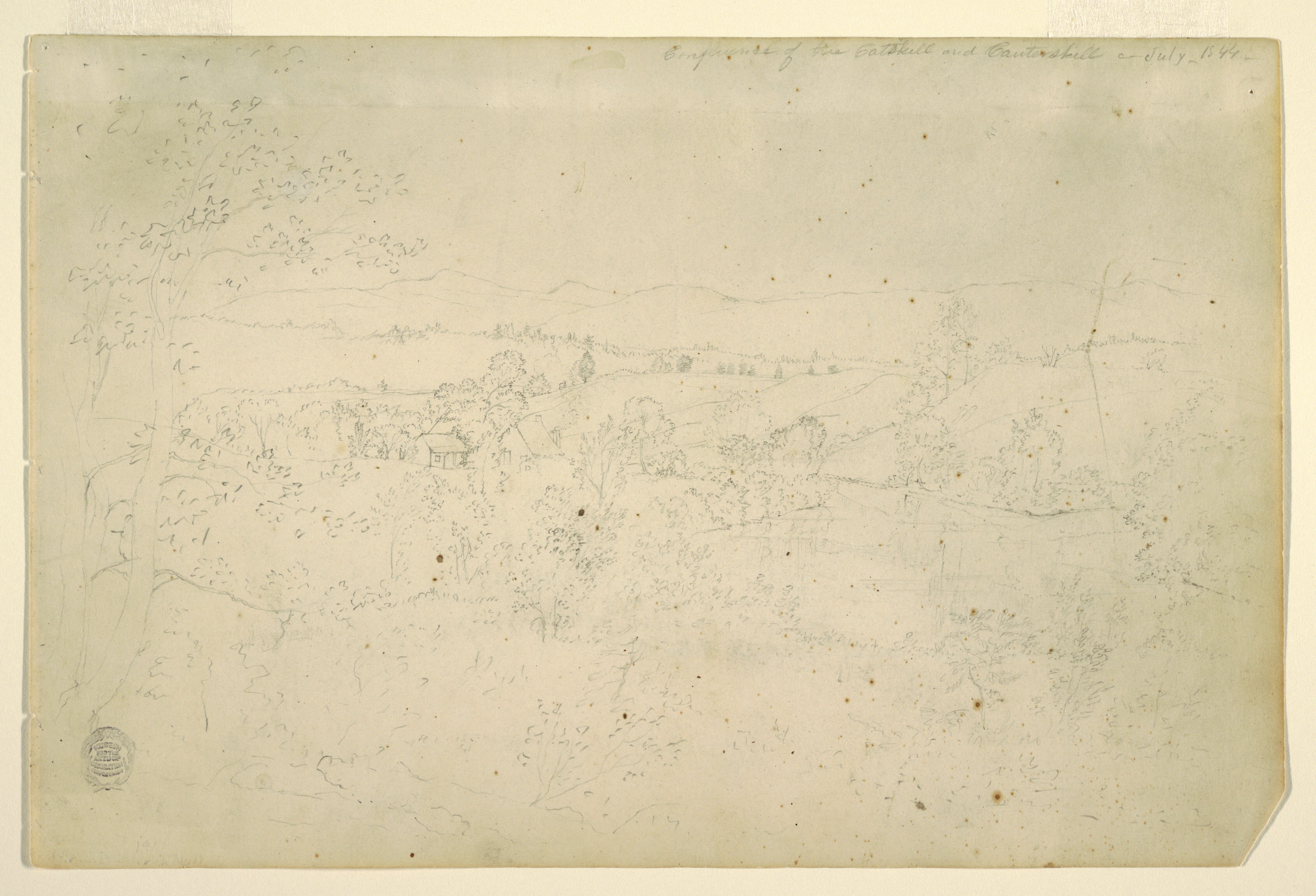 Inscribed in graphite, upper margin: Confluence of the Catskill and the Cauterskill -July 1844-; verso upper margin: 1 + 2 are / changes of / the same cloud (changed) Sunset Nov. 1844