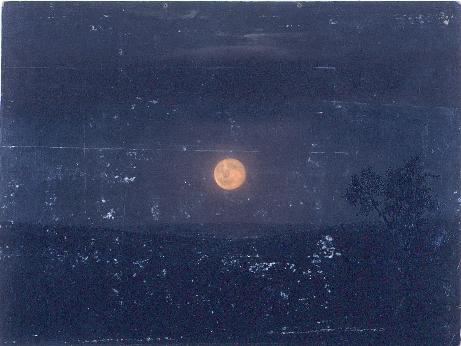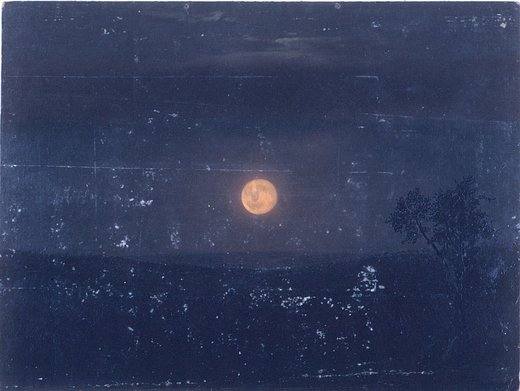 Drawing, Moonlight, Church's farm; Frederic Edwin Church (American, 1826–1900); USA; brush and oil, graphite on heavy cardboard; 30.6 × 40.7 cm (12 1/16 in. × 16 in.); Gift of Louis P. Church; 1917-4-1319-a