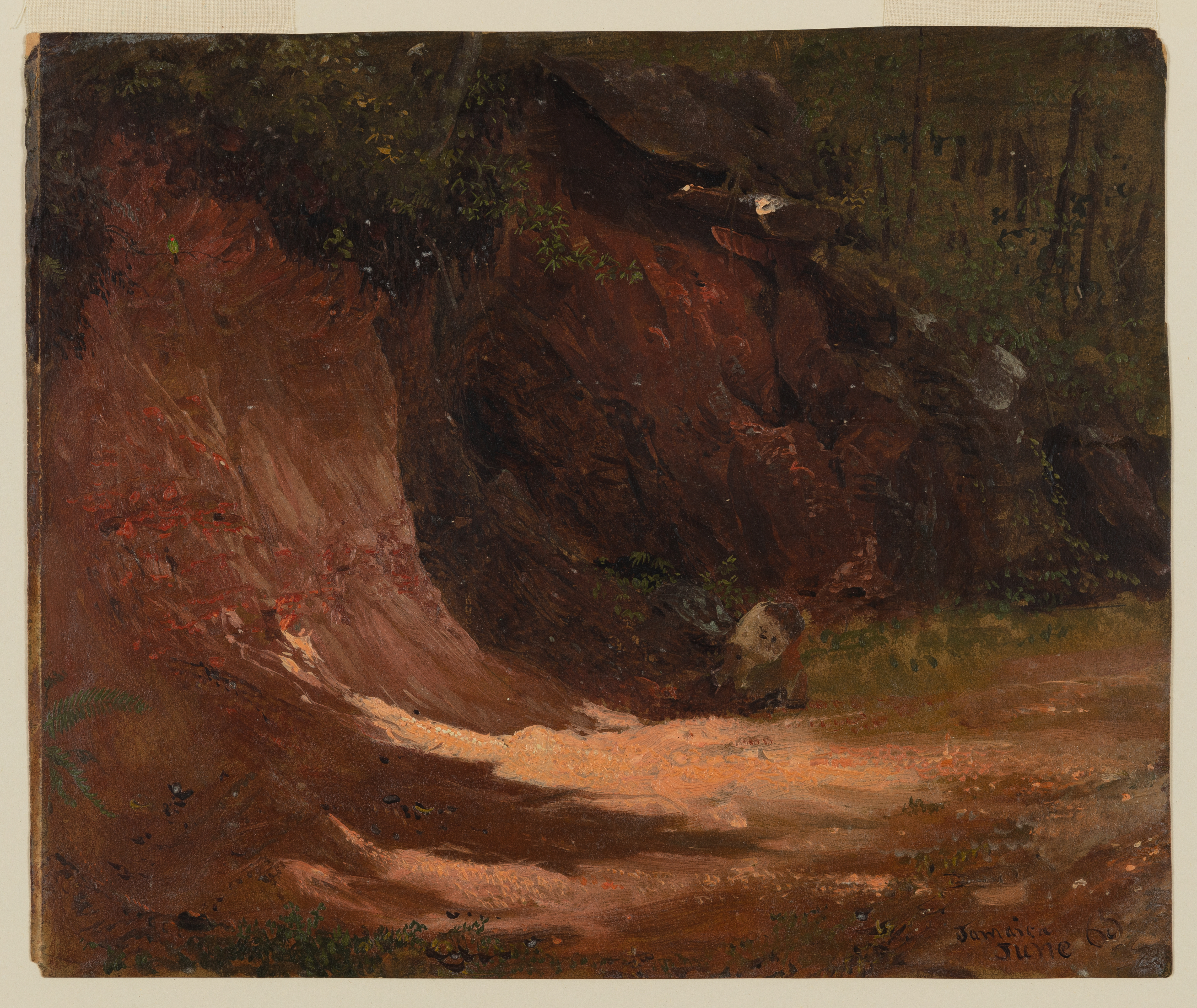 Drawing, Trail Embankment, Jamaica; Frederic Edwin Church (American, 1826–1900); USA; brush and oil, graphite on paperboard; 22.3 × 26.7 cm (8 3/4 × 10 1/2 in.); Gift of Louis P. Church; 1917-4-1361