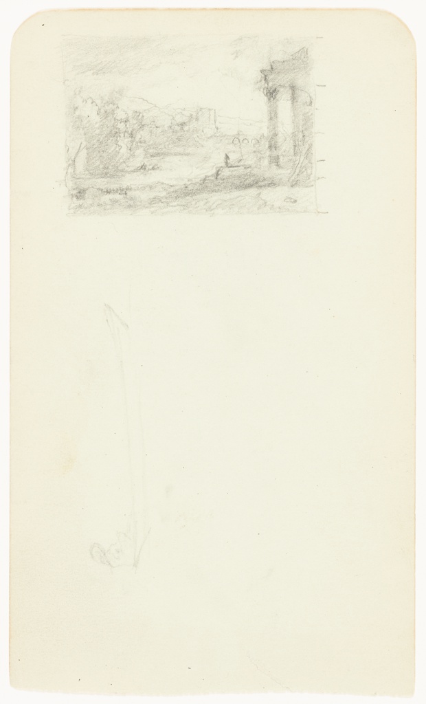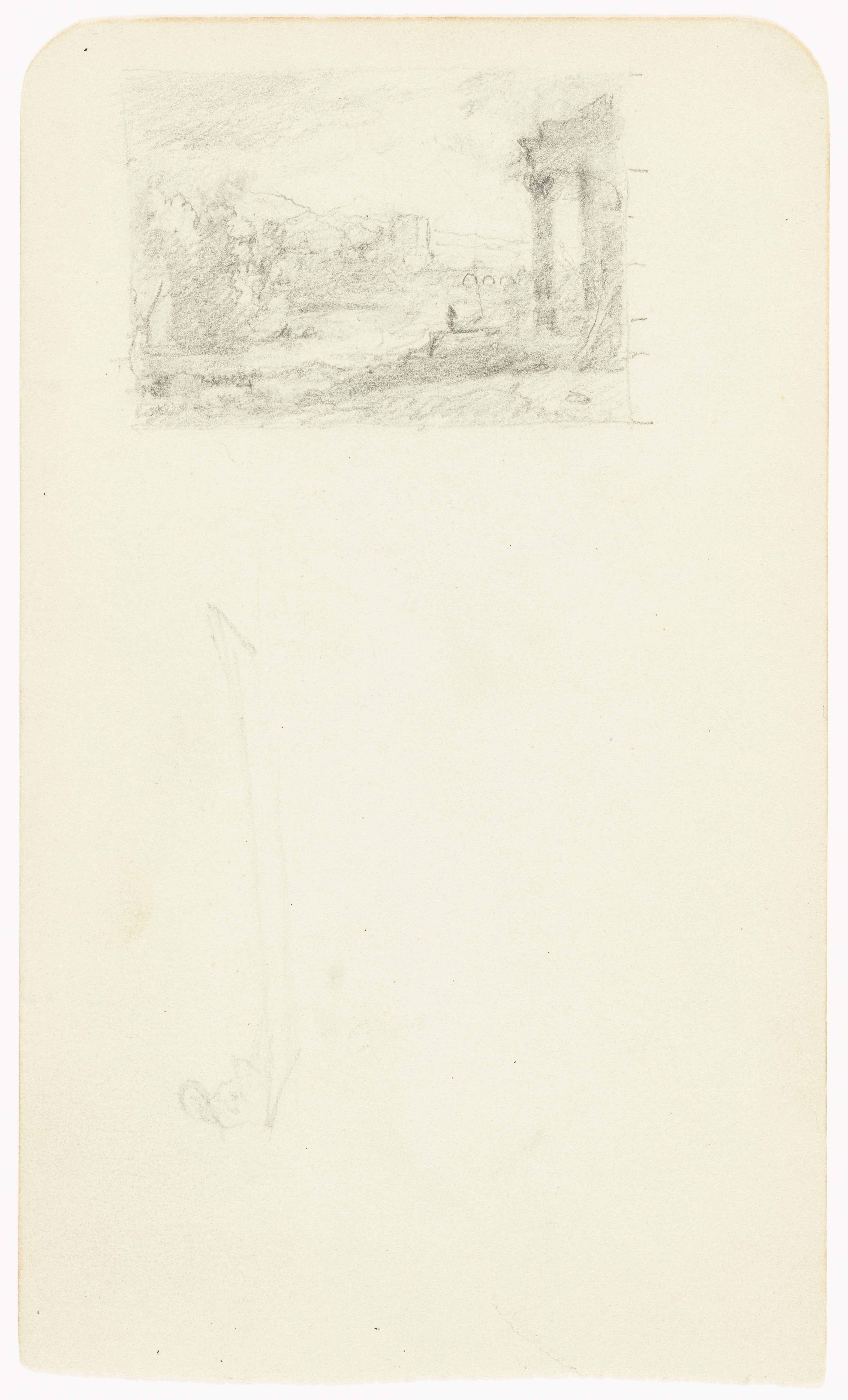 Drawing, Study for a Painting and Figure in a Canoe, Mexico; Frederic Edwin Church (American, 1826–1900); USA; graphite on light green wove paper; 10.3 × 17.3 cm (4 1/16 × 6 13/16 in.); Gift of Louis P. Church; 1917-4-1382