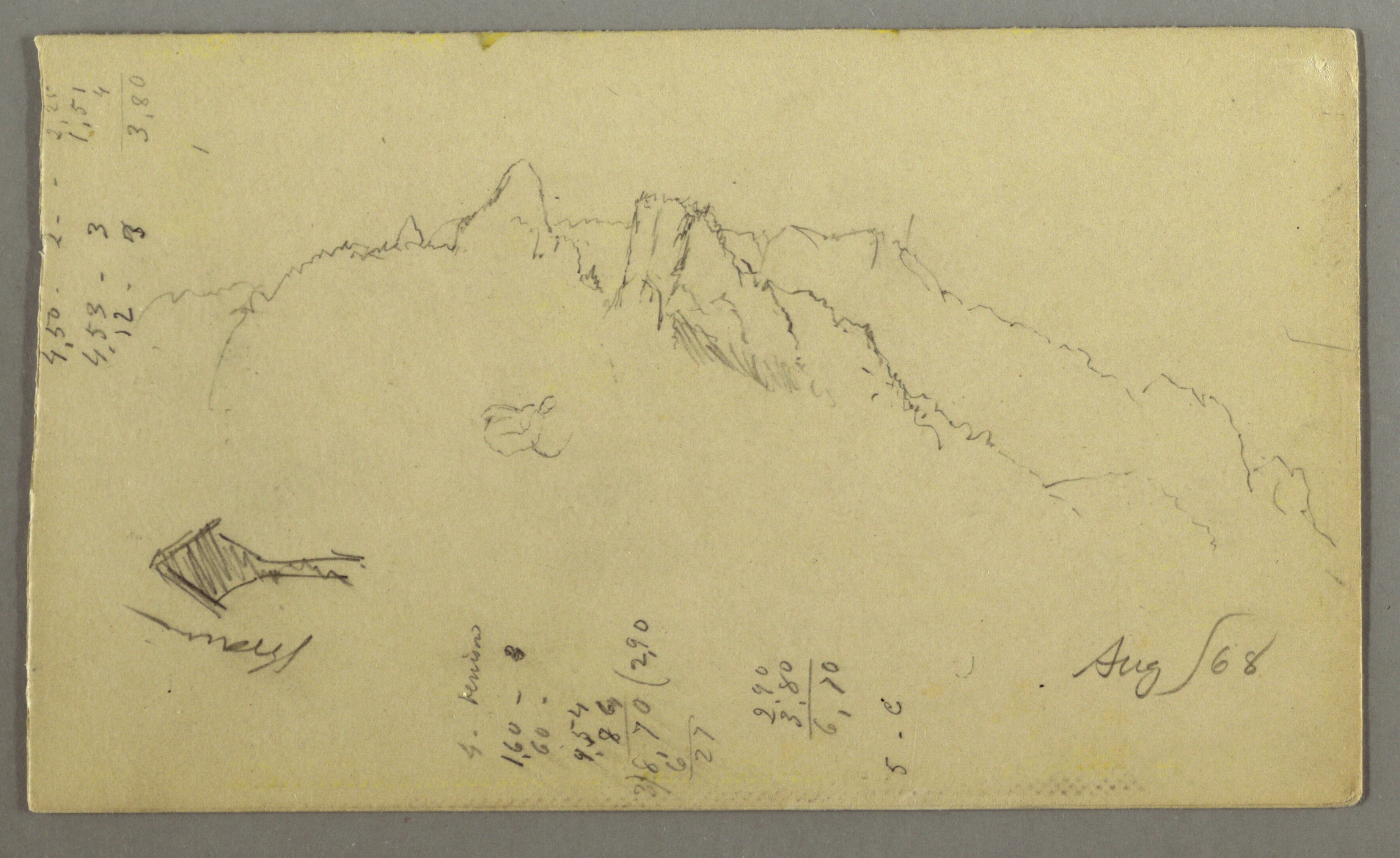 This is a Drawing. It was created by Frederic Edwin Church. It is dated August 1868 and we acquired it in 1917. Its medium is graphite on tan wove paper; verso: graphite. It is a part of the Drawings, Prints, and Graphic Design department.