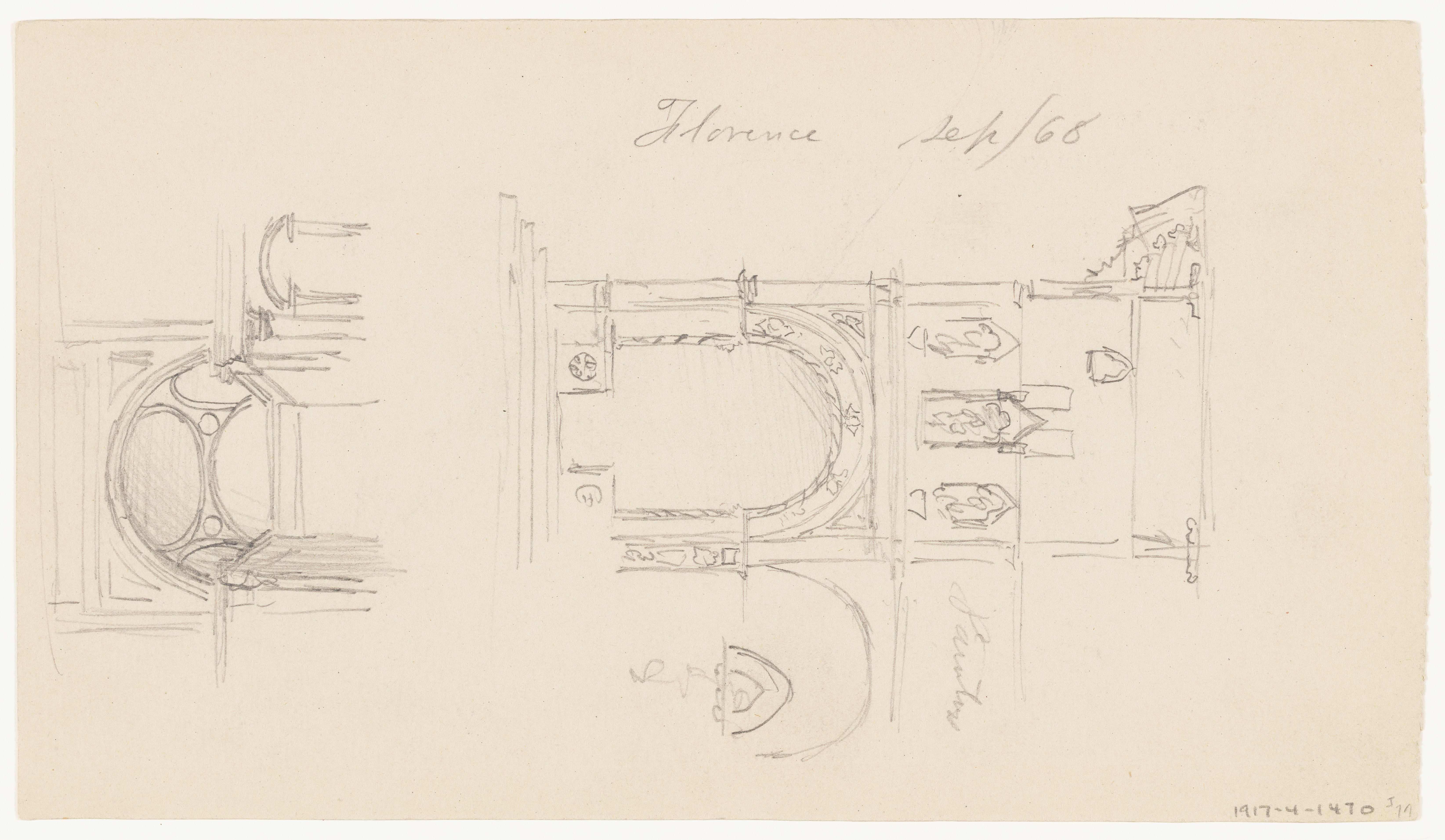 This is a Drawing. It was created by Frederic Edwin Church. It is dated September 1868 and we acquired it in 1917. Its medium is graphite on grey-green laid paper; verso: graphite. It is a part of the Drawings, Prints, and Graphic Design department.