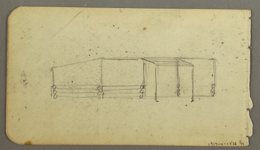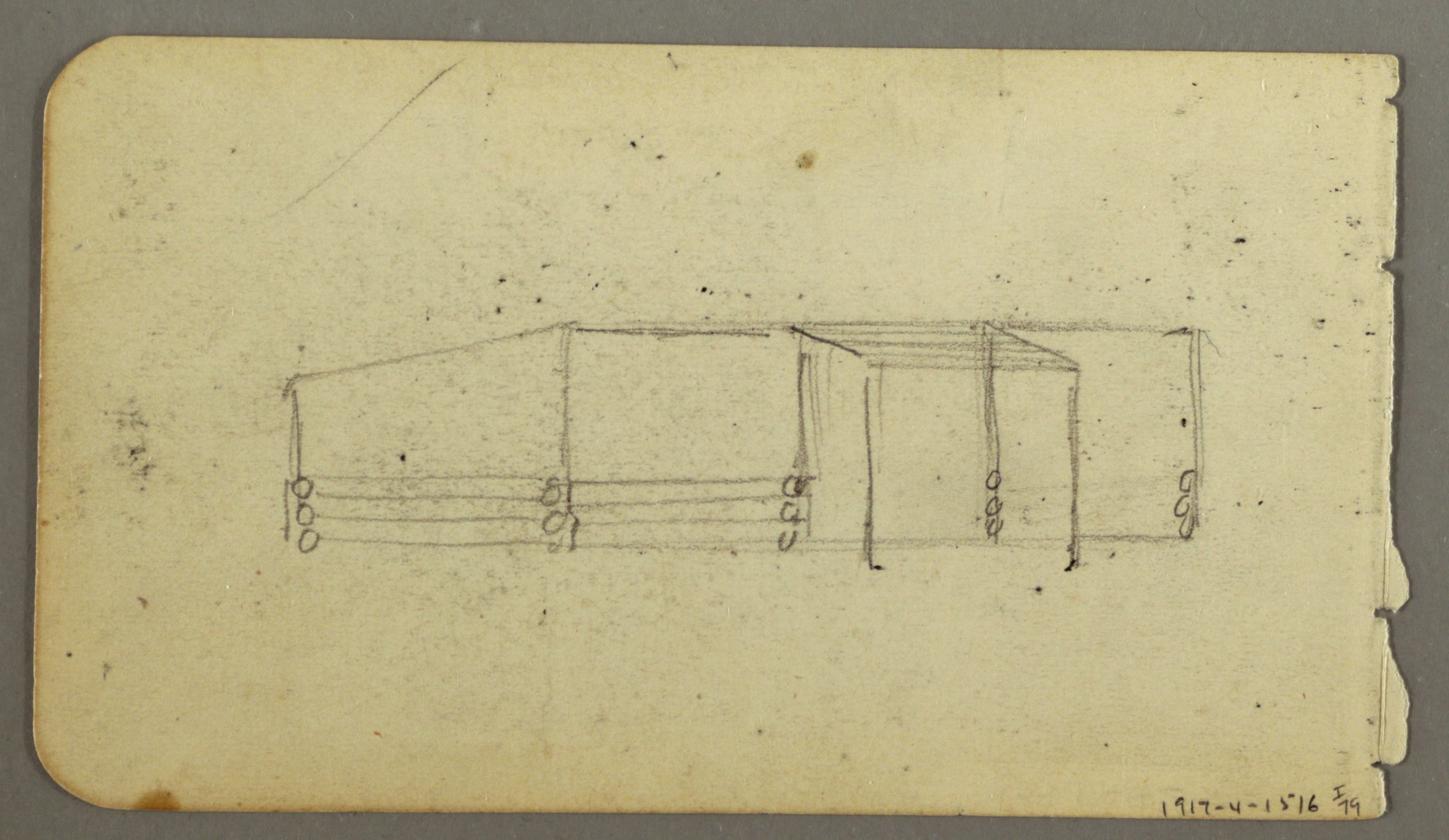 Drawing, Floorplan of a Cabin, Lake Millinocket, Maine; Frederic Edwin Church (American, 1826–1900); USA; graphite on white wove paper; verso: graphite; 10.2 × 18.1 cm (4 in. × 7 1/8 in.); Gift of Louis P. Church; 1917-4-1516