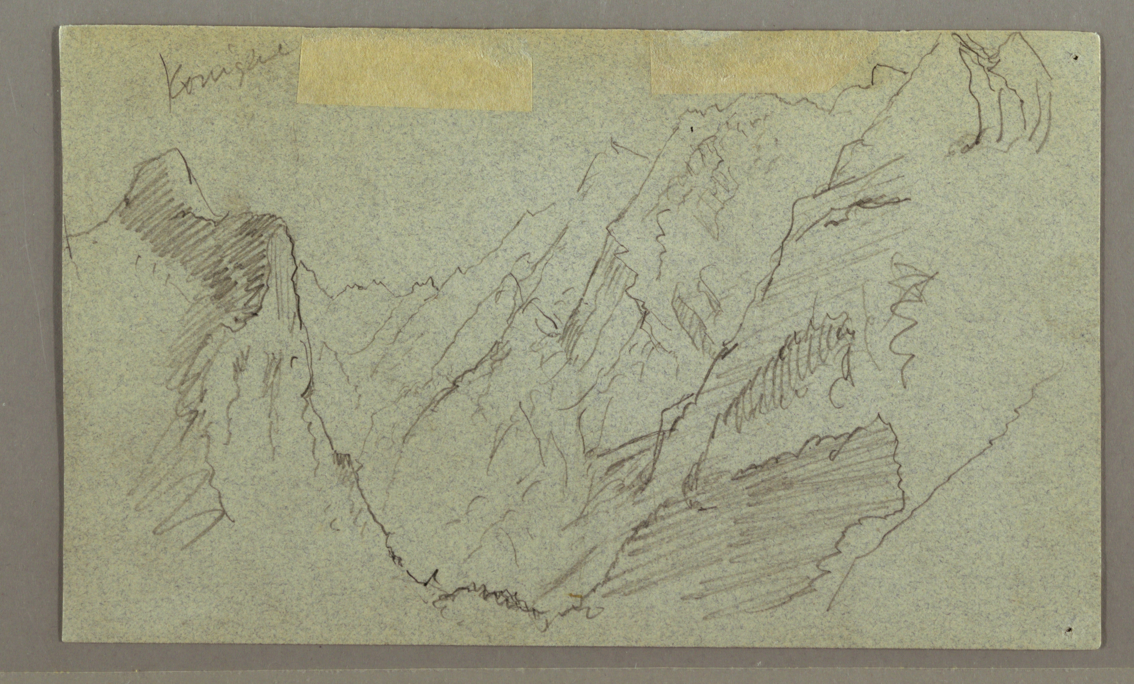 Drawing, Mountain Valley near the Königssee, Germany; Frederic Edwin Church (American, 1826–1900); USA; graphite on blue wove paper; verso: graphite; 12.2 × 20.6 cm (4 13/16 × 8 1/8 in.); Gift of Louis P. Church; 1917-4-559-b