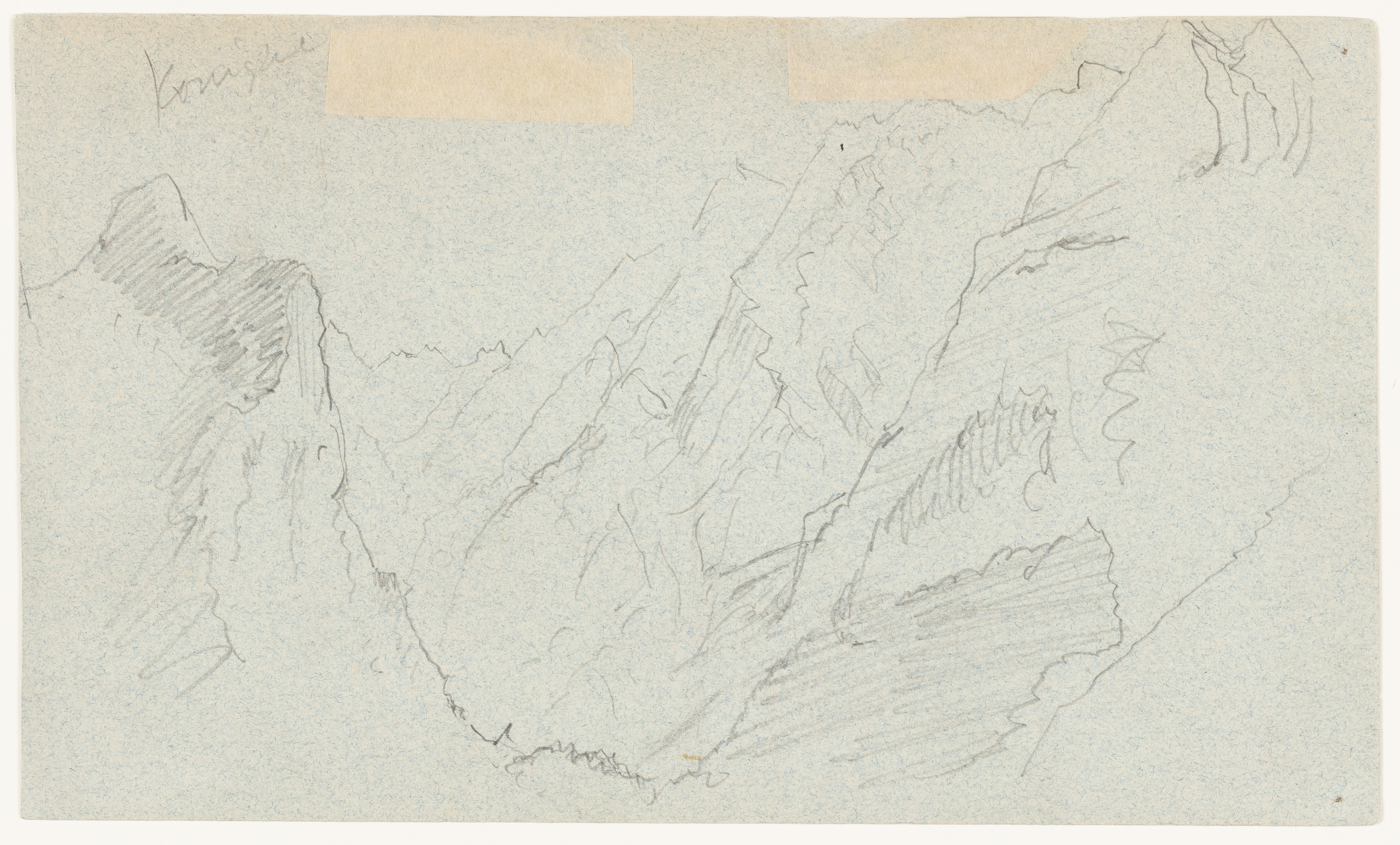 Drawing, Mountain Valley near the Königssee, Germany; Frederic Edwin Church (American, 1826–1900); USA; graphite on blue wove paper; verso: graphite; 12.2 × 20.6 cm (4 13/16 × 8 1/8 in.); Gift of Louis P. Church; 1917-4-559-b