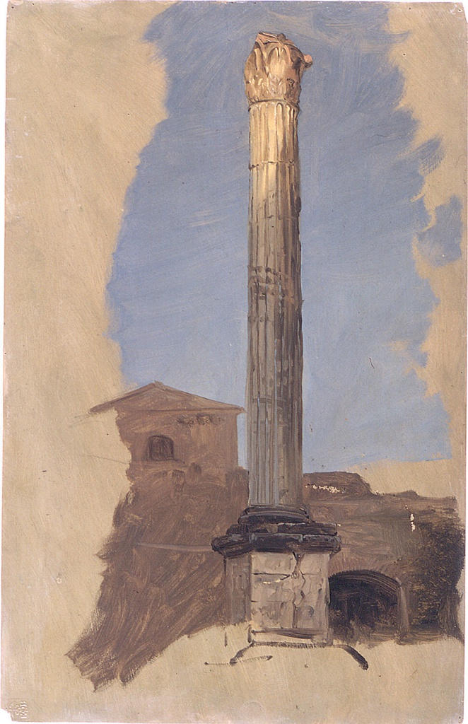 Drawing, Column of Phocas, Rome, Italy; Frederic Edwin Church (American, 1826–1900); USA; oil and graphite on tan paperboard; verso: graphite; 47.3 × 30.3 cm (18 5/8 × 11 15/16 in.); Gift of Louis P. Church; 1917-4-621