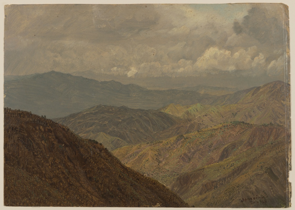 Drawing, Among the Blue Mountains, Jamaica; Frederic Edwin Church (American, 1826–1900); USA; brush and oil, graphite on paperboard; 19.9 × 27.9 cm (7 13/16 × 11 in.); Gift of Louis P. Church; 1917-4-680-a