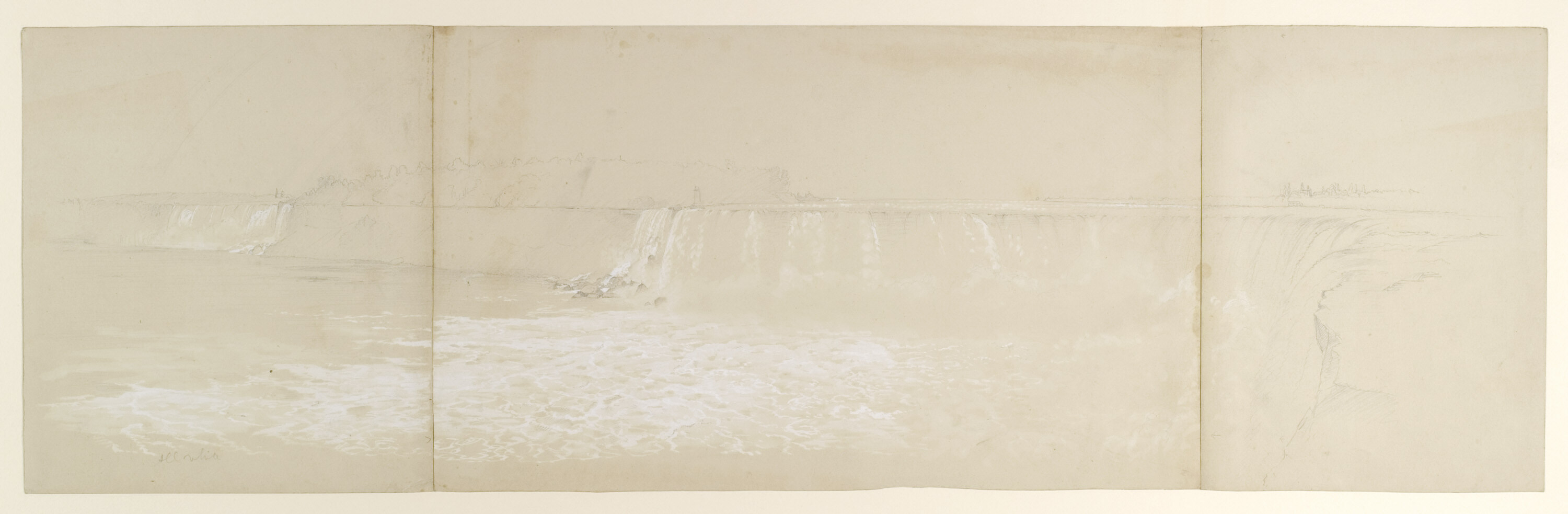 Drawing, Niagara Falls, Part Two; Frederic Edwin Church (American, 1826–1900); USA; graphite, brush and white gouache on off-white wove paper; 27.3 × 45.2 cm (10 3/4 × 17 13/16 in.); Gift of Louis P. Church; 1917-4-721-b