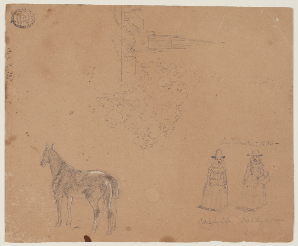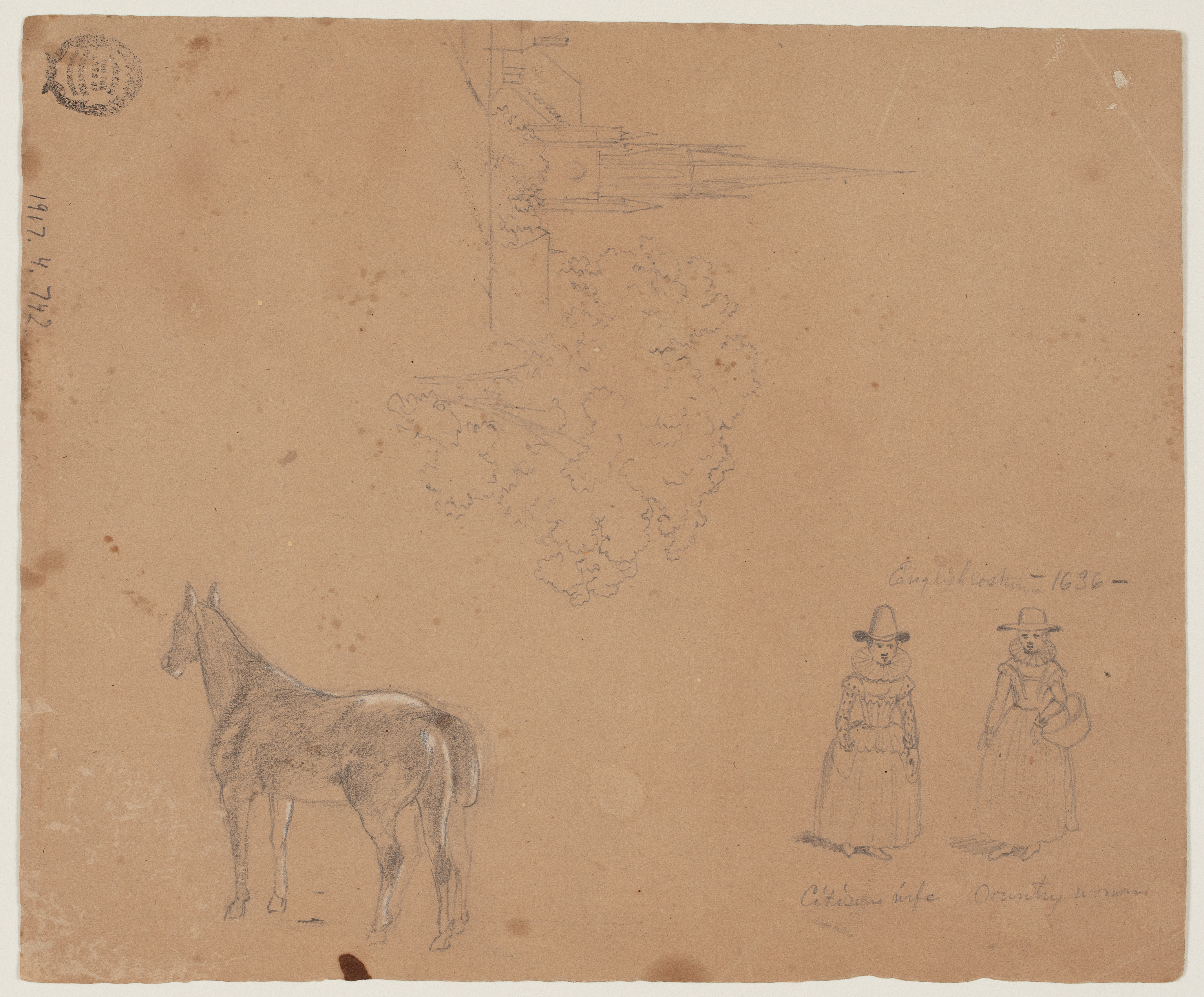 Inscribed: in graphite, upper right: Oct 1845; in graphite, verso upper right: English costume -1636- / Citizen wife Country woman