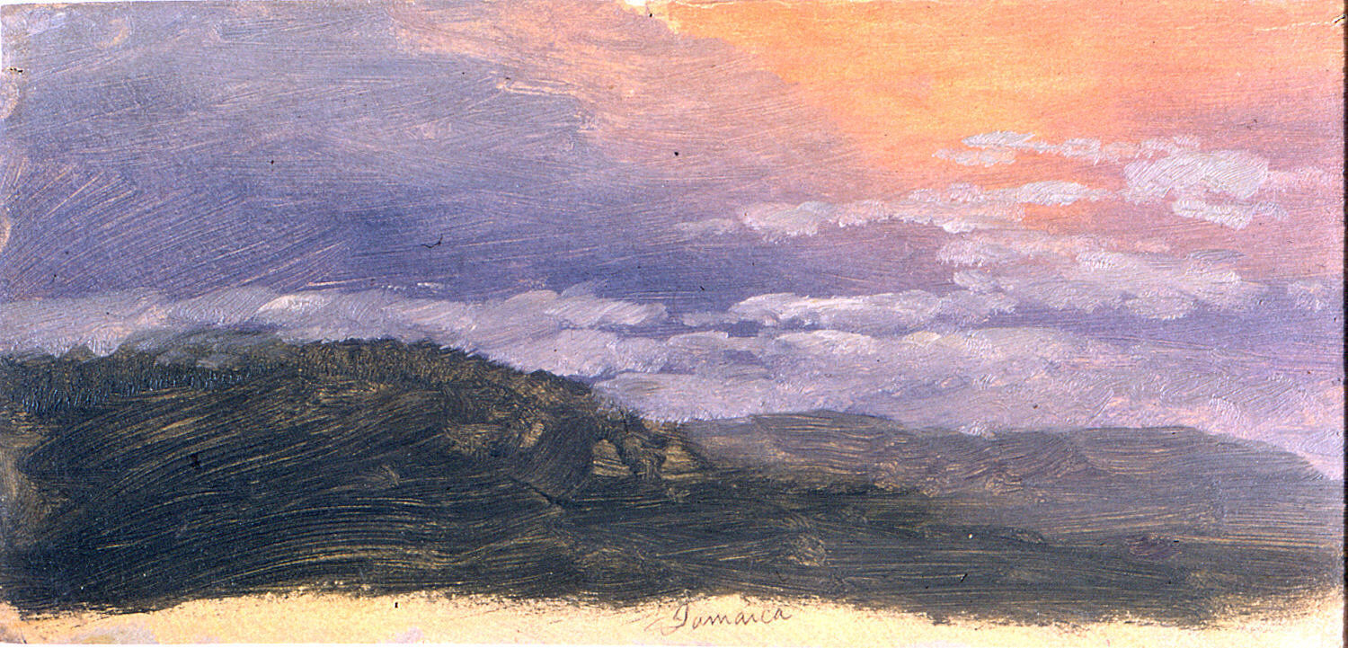 Drawing, Sunset in Jamaica; Frederic Edwin Church (American, 1826–1900); USA; brush and oil on paperboard; 13.9 × 28.6 cm (5 1/2 × 11 1/4 in.); Gift of Louis P. Church; 1917-4-755-c