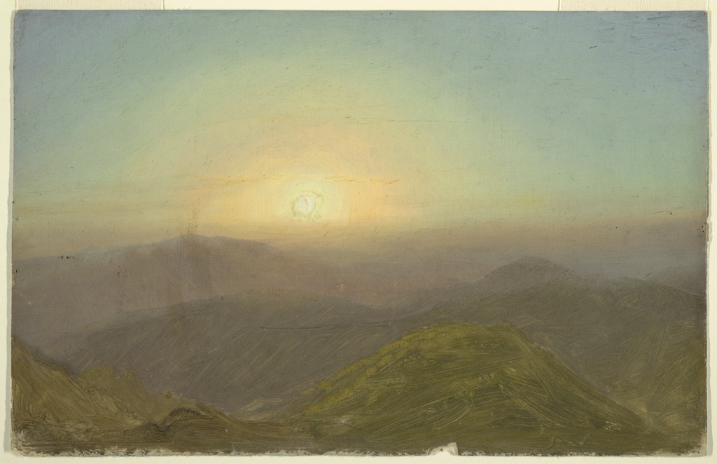Drawing, Sunrise, Jamaica; Frederic Edwin Church (American, 1826–1900); Jamaica, West Indies; oil and graphite on off-white paperboard; 29.2 × 45.5 cm (11 1/2 × 17 15/16 in.); Gift of Louis P. Church; 1917-4-793