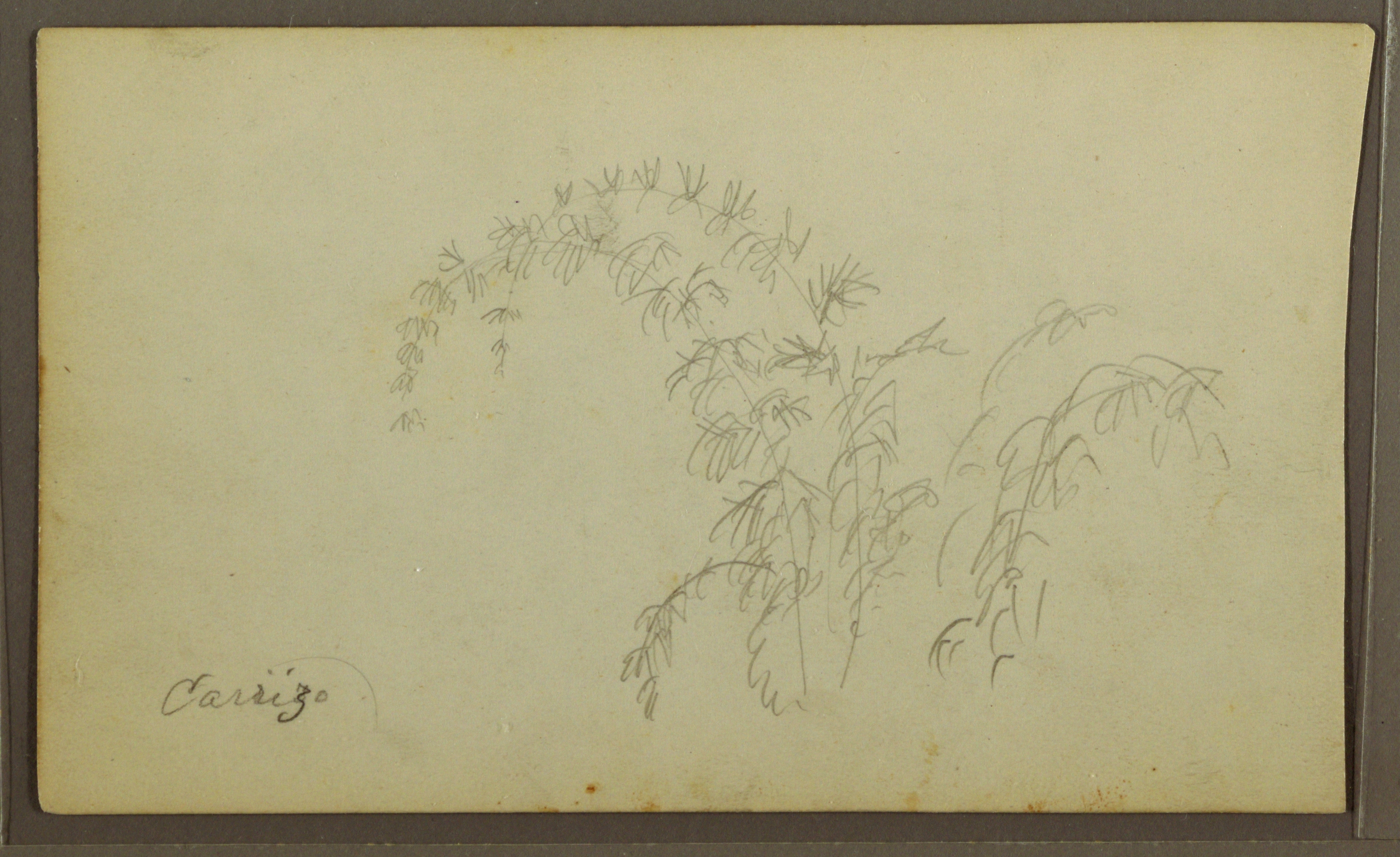 Drawing, Carrizo Reed Plant, Ecuador; Frederic Edwin Church (American, 1826–1900); USA; graphite on white wove paper; verso: graphite; 10.8 × 18.5 cm (4 1/4 × 7 5/16 in.); Gift of Louis P. Church; 1917-4-836-a