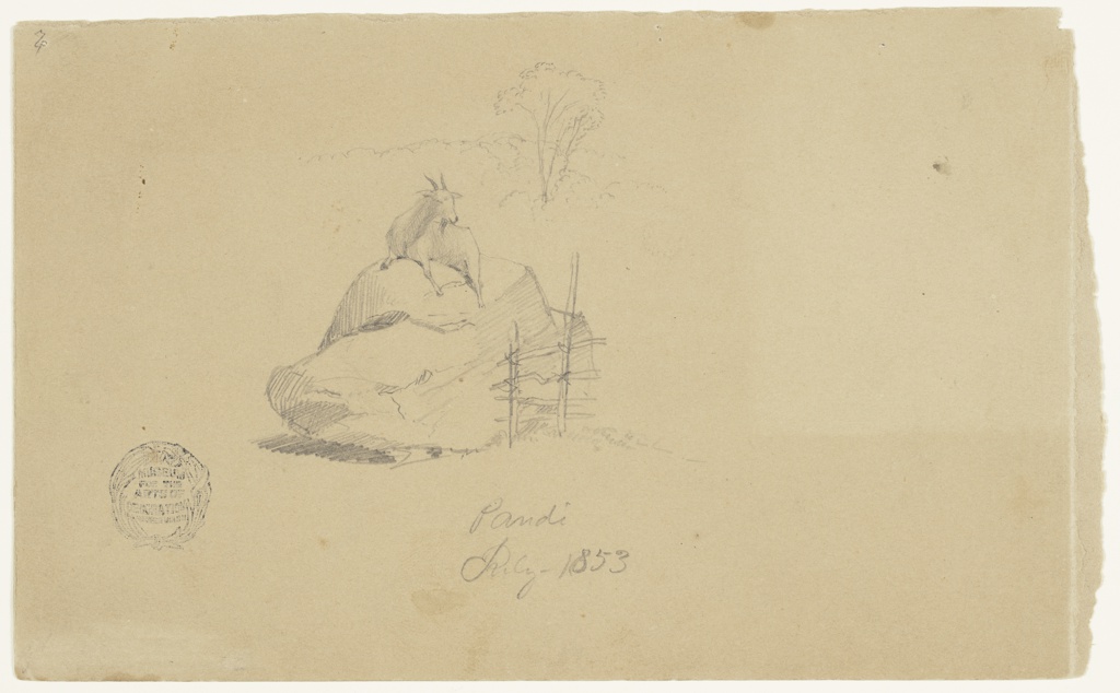 Drawing, A Goat in Pandi, Colombia; Frederic Edwin Church (American, 1826–1900); Colombia; graphite on white wove paper; 12.6 × 20.5 cm (4 15/16 × 8 1/16 in.); Gift of Louis P. Church; 1917-4-84-b