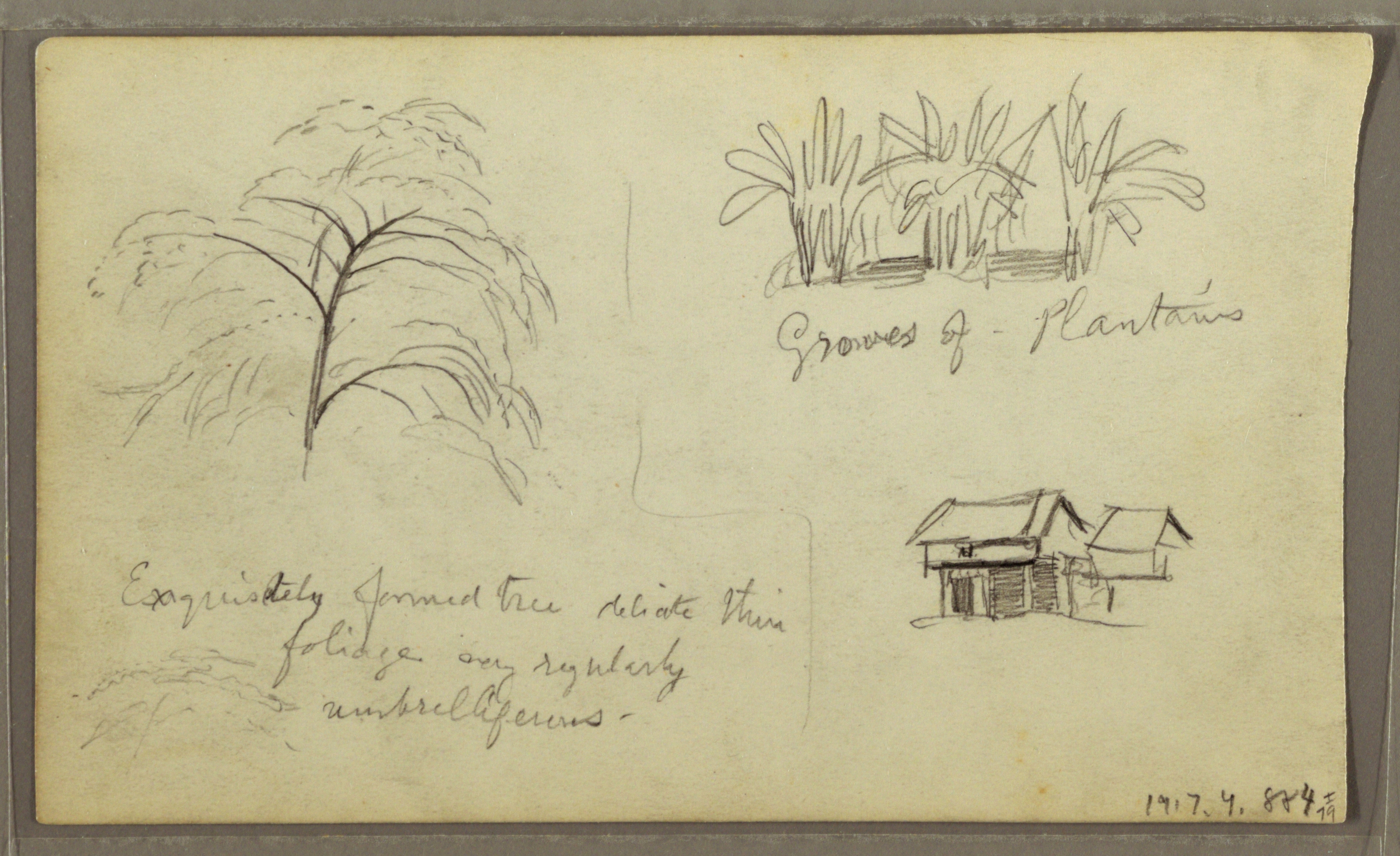 Inscribed in graphite, verso upper right: Grove of Plantains; verso lower left: Exquisitely formed tree delicate thin / foliage very regularly / umbrilliferous