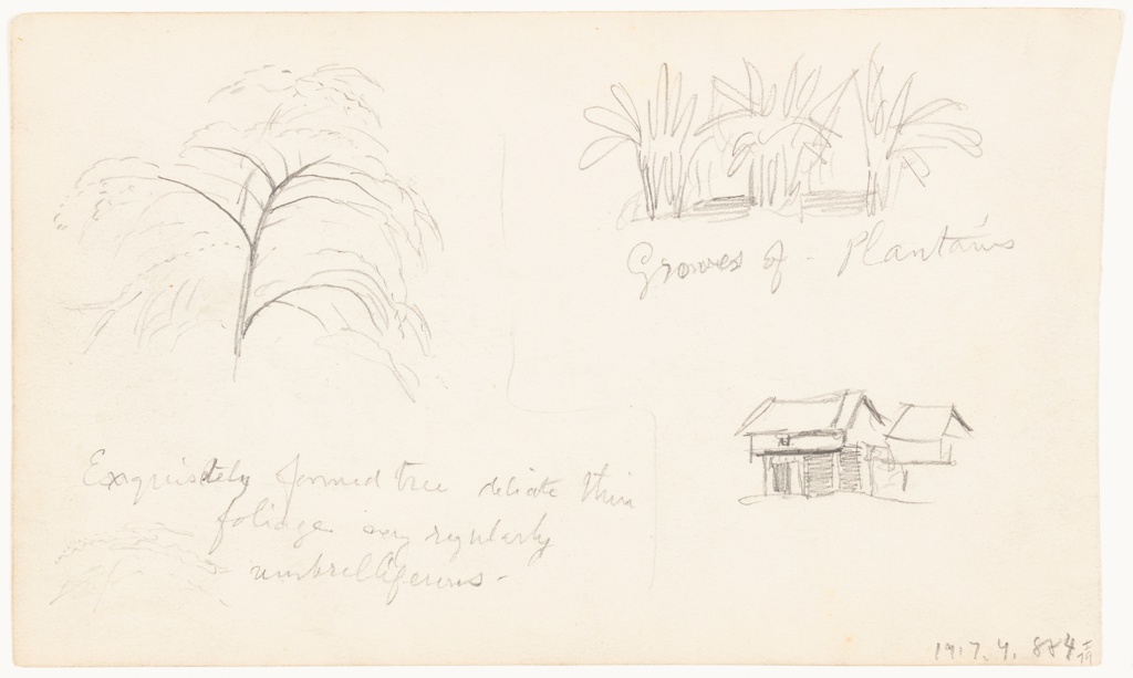 Inscribed in graphite, verso upper right: Grove of Plantains; verso lower left: Exquisitely formed tree delicate thin / foliage very regularly / umbrilliferous