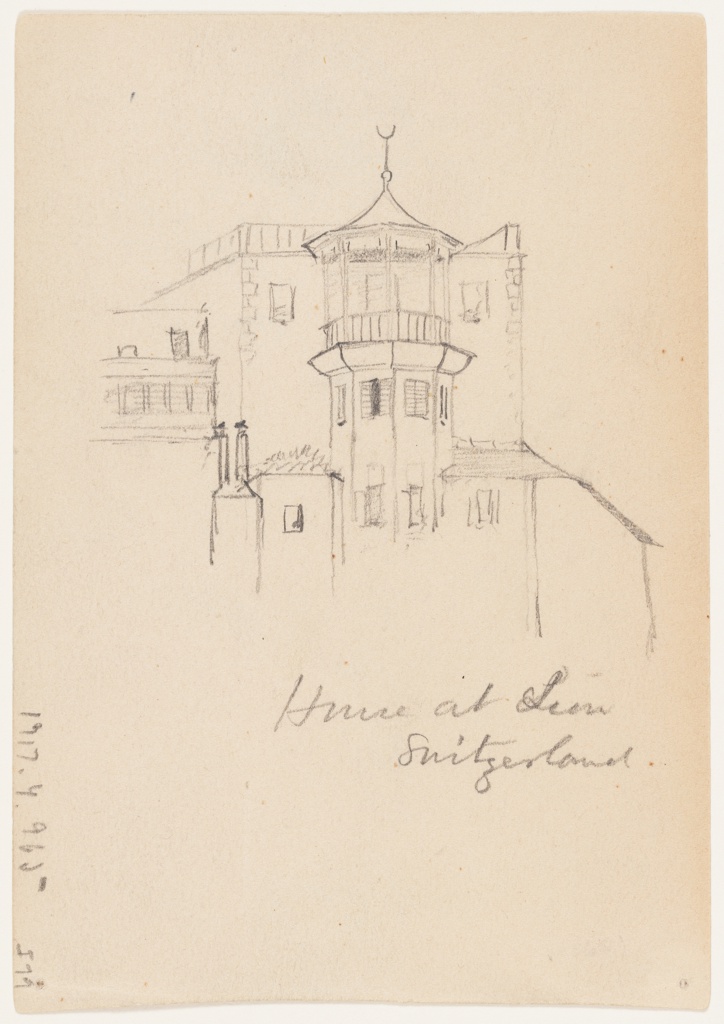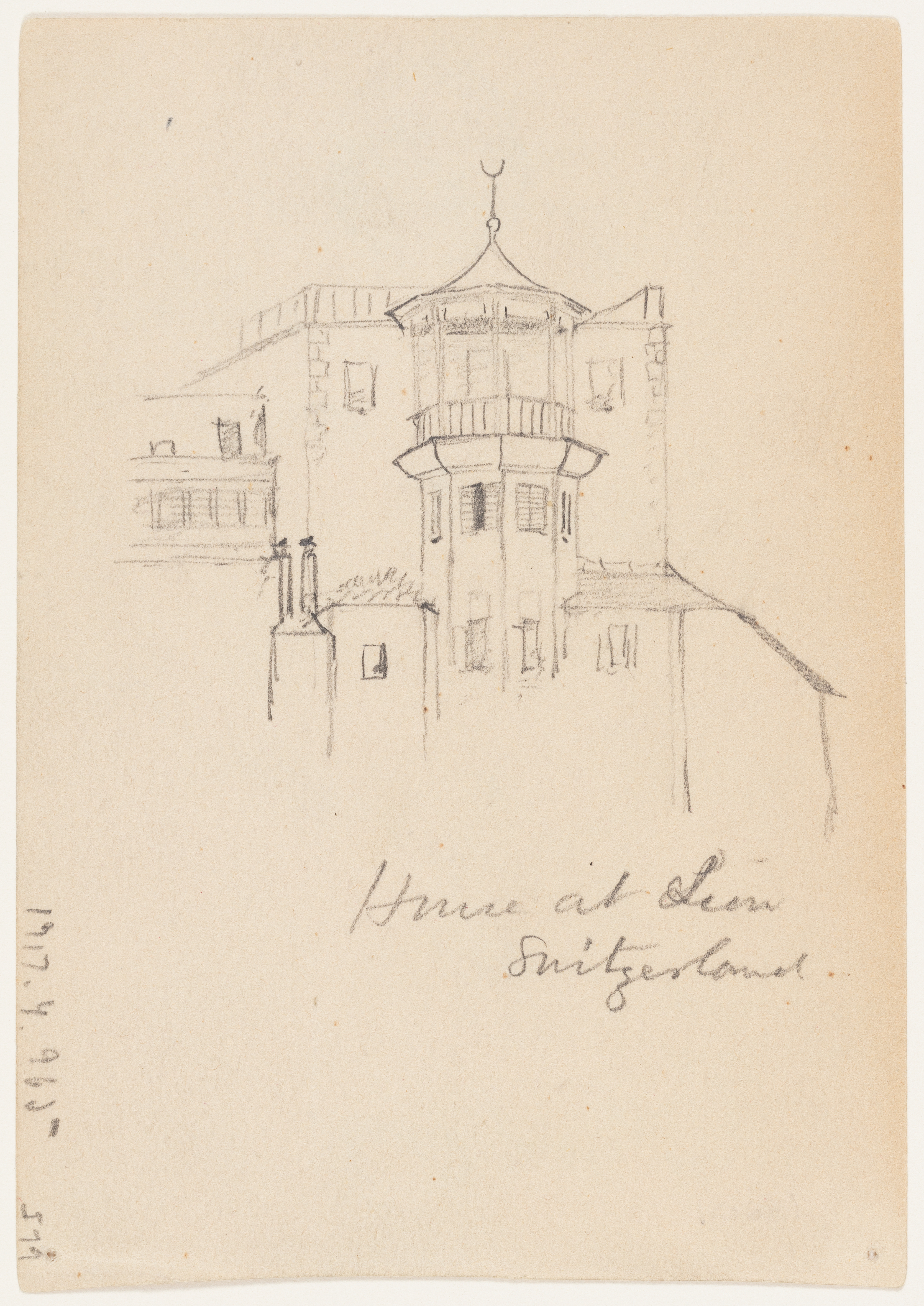 Drawing, Corner Tower at Tourbillon Castle, Sion, Switzerland; Frederic Edwin Church (American, 1826–1900); USA; graphite on white wove paper; verso: graphite; 12.3 × 8.6 cm (4 13/16 × 3 3/8 in.); Gift of Louis P. Church; 1917-4-965