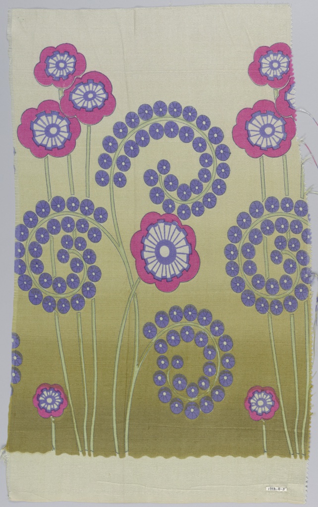 This is a Sample. It was manufactured by Duplan Silk Corporation. It is dated ca. 1918 and we acquired it in 1918. Its medium is silk and its technique is printed on plain weave. It is a part of the Textiles department.