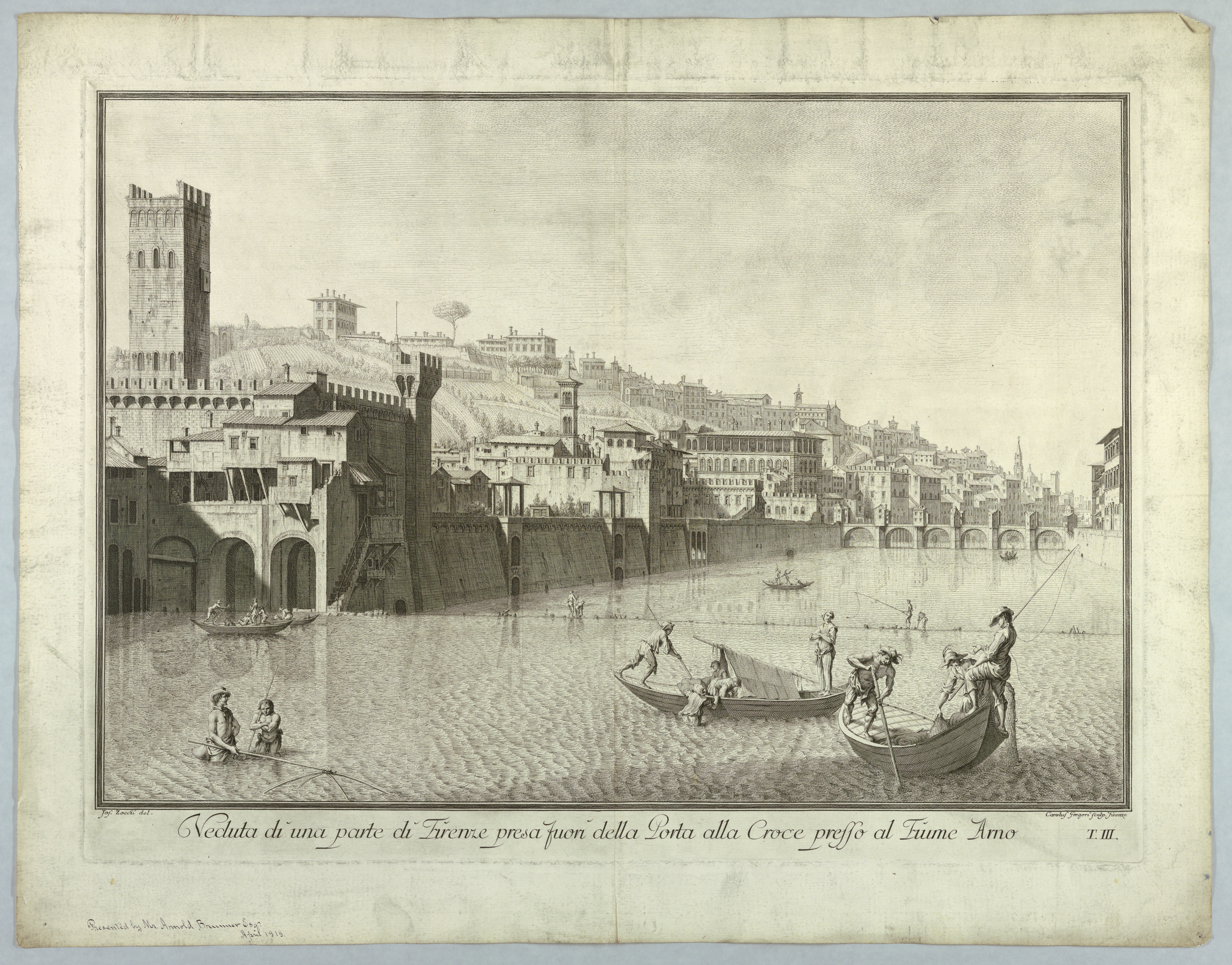 Bottom margin: "Jos. Zocchi del." "Carolus Gregori sculp. Firenze." "T.III."; Bottom left: presentation note