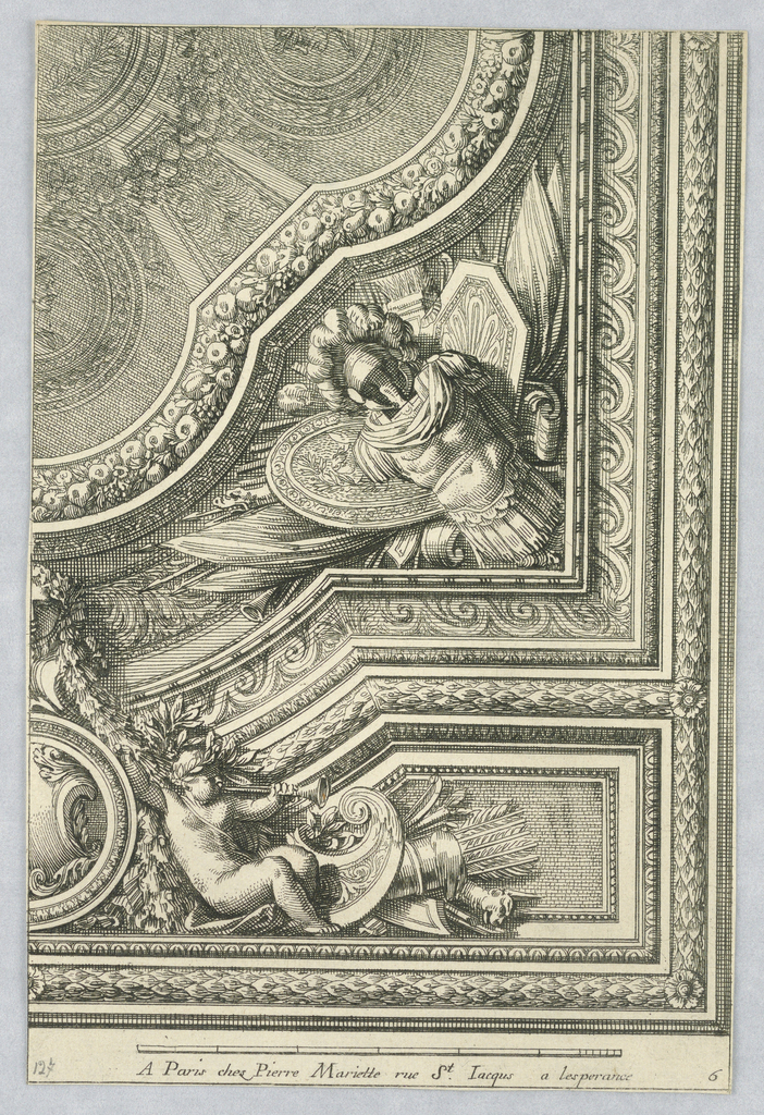 Print, Design for Ceiling, from "Quarts de Plafons"; Print Maker: Jean Le Pautre (French, 1618–1682); etching on paper; 21.4 × 14.3 cm (8 7/16 × 5 5/8 in.); Purchased for the Museum by the Advisory Council; 1921-6-120-2