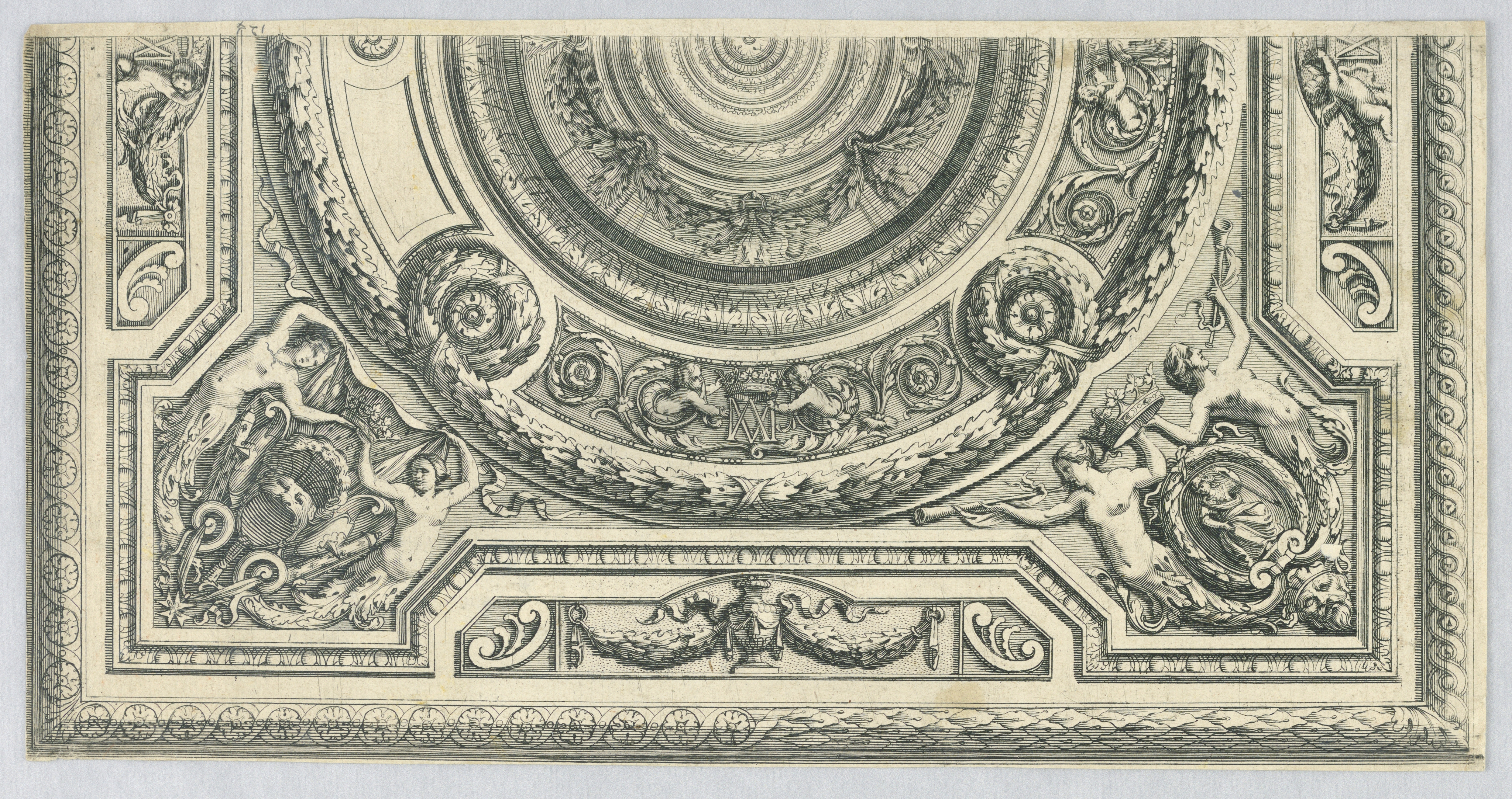 This is a Print. It was print maker: Jean Le Pautre. It is dated 1640-1650 and we acquired it in 1920. Its medium is etching on paper. It is a part of the Drawings, Prints, and Graphic Design department.