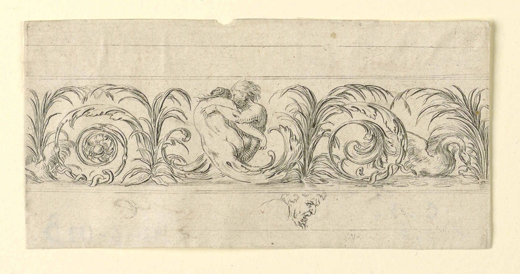 Print, Plate from Frises, Feuillages et Grotesques (Friezes, Foliage and Grotesques); Designed by Stefano della Bella (Italian, 1610–1664); Published by Jacques Van Merle (Flemish, 1616 - 1682); Italy; etching on laid paper; H x W: 6 × 12.2 cm (2 3/8 × 4 13/16 in.); Purchased for the Museum by the Advisory Council; 1921-6-157-b