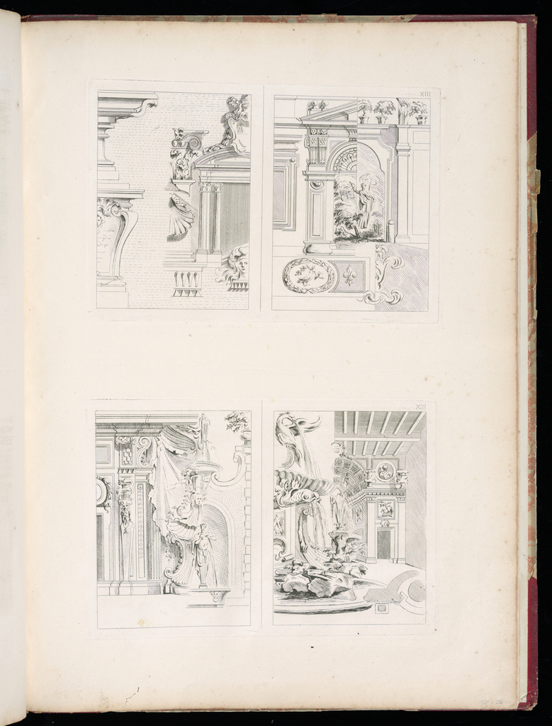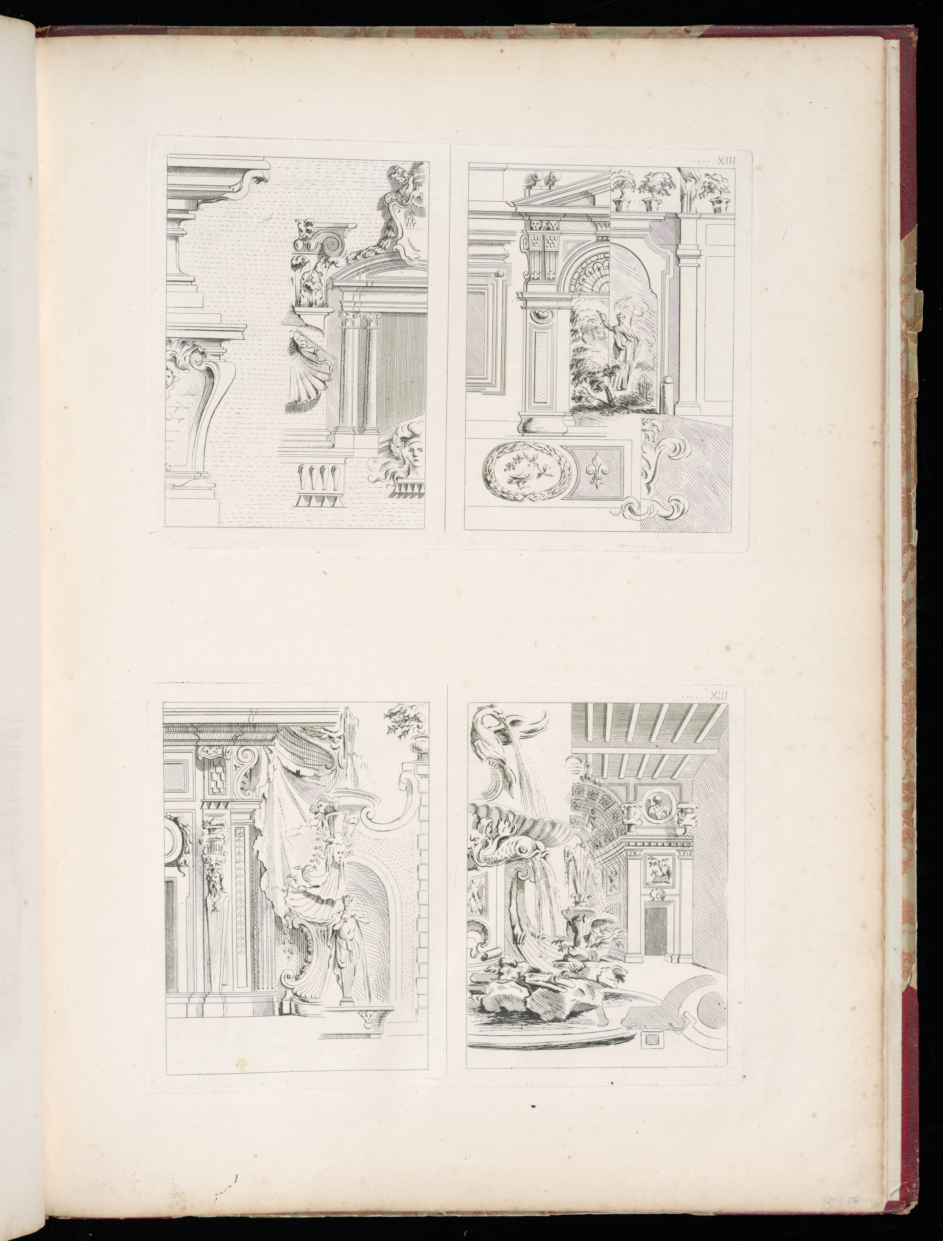 Bound Print, Designs After Architecture; Designed by Gilles-Marie Oppenord (French, 1672–1742); Print Maker: Gabriel Huquier (French, 1695–1772); Published by Chez Huquier; France; etching and engraving on laid paper; Purchased for the Museum by the Advisory Council; 1921-6-216-162