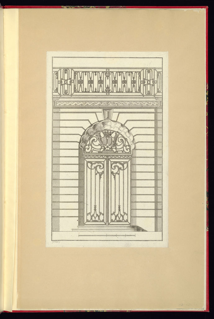 Print, Iron Portal Design; Designed by Moreau; Print Maker: Jean Pelletier (French, born ca. 1736); Published by Louis-Joseph Mondhare (French, 1734–1799); France; engraving on paper; Sheet: 39.8 x 24.8 cm (15 11/16 x 9 3/4 in.); Purchased for the Museum by the Advisory Council; 1921-6-226-5