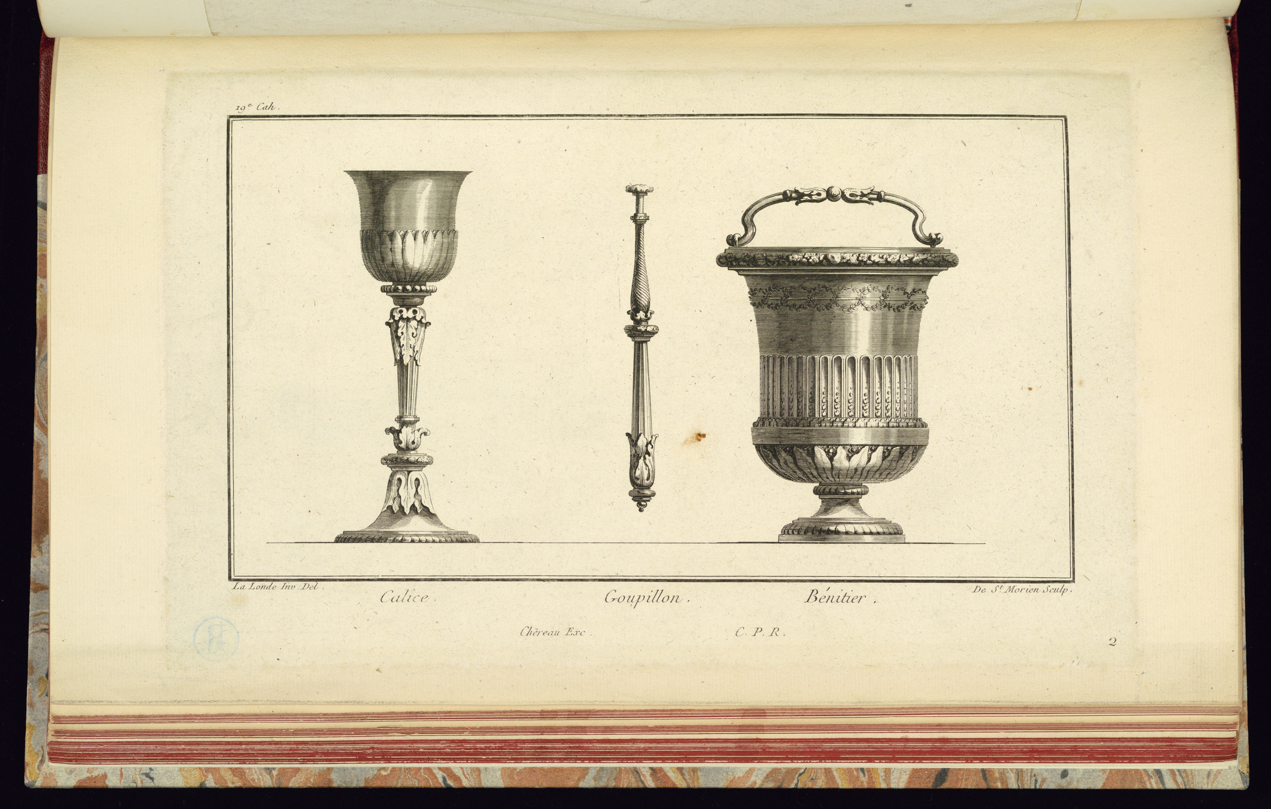 <ref name=CH>{{cite web |url=https://www-6.collection.cooperhewitt.org/objects/18236495/ |title=Print, Calice. Goupillon. Bénitier. |author=Cooper Hewitt, Smithsonian Design Museum |accessdate=19 December 2025 |publisher=Smithsonian Institution}}</ref>