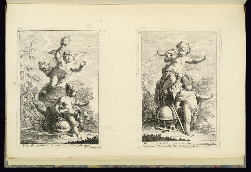 Print, Suitte des Enfants; Designed by François de Cuvilliés the younger (German, 1731 - 1777); Print Maker: Michael Hartwagner (German, d. 1776); Germany; etching and engraving on off-white laid paper; Platemark: 15.4 x 22.1 cm (6 1/16 x 8 11/16 in.) Sheet: 44 x 28.6 cm (17 5/16 x 11 1/4 in.); Purchased for the Museum by the Advisory Council; 1921-6-285-140-a